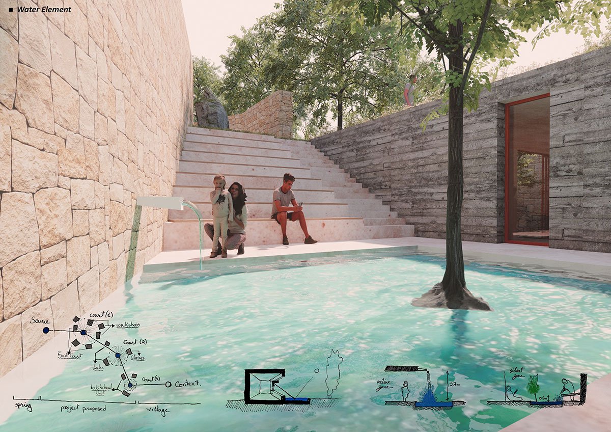 Excerpt: ‘A Humanized Architecture: A center for Heritage, Education and Culture in Akkar Al Atika’ is an architecture thesis focused on community development by Wael Daher from The Jamal Abed Faculty of Architecture, AZM University, that seeks to increase awareness of the significance of rural life, the value of heritage, and the sense of being rooted in and belonging to a place. The project’s objective is to create humanised architecture that complements the small community of Akkar al Akita in northern Lebanon and serves as a model for the area, enabling the residents to recognise and comprehend their history.