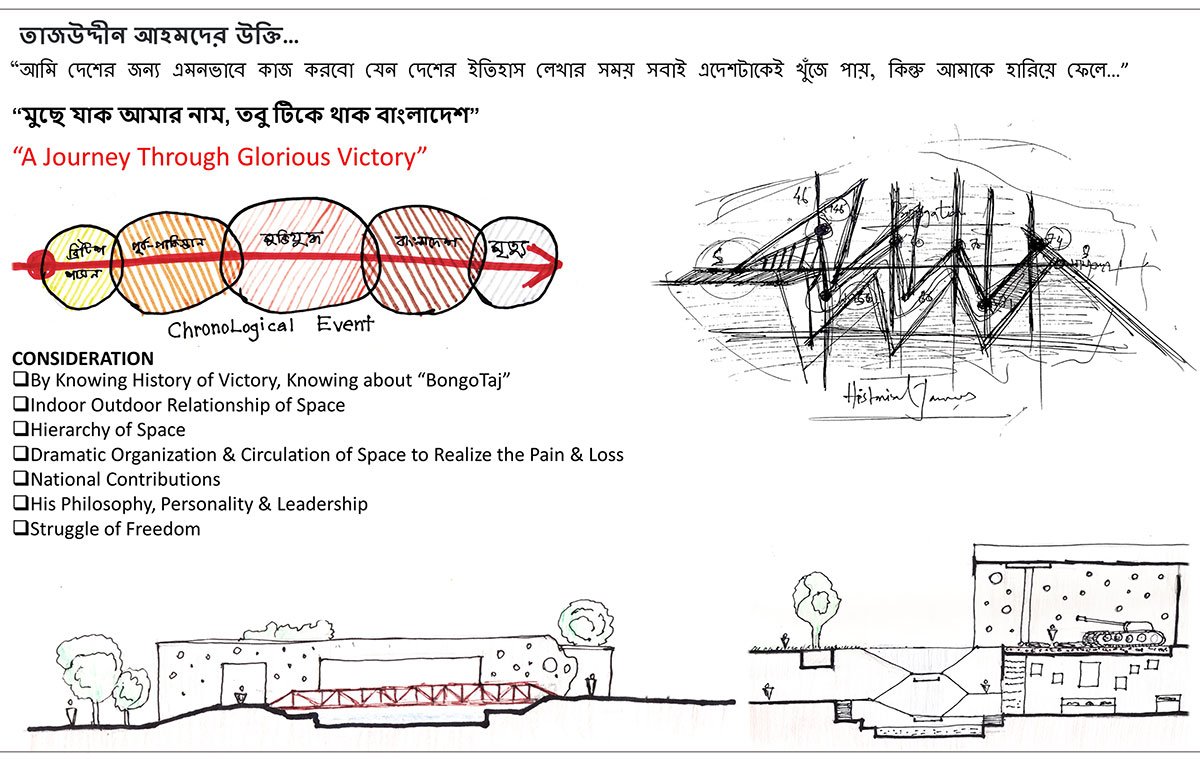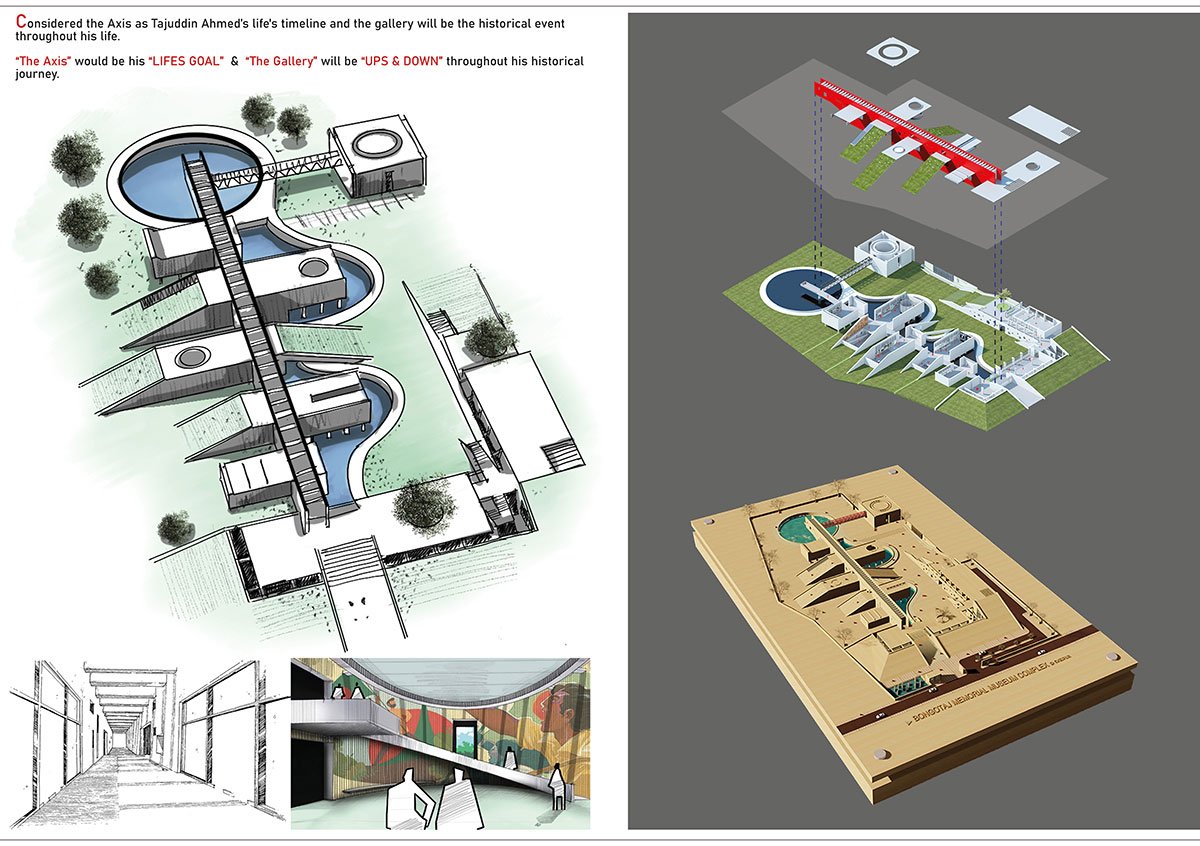 Excerpt: ‘Bongotaj Memorial Museum Complex at Kapasia, Gazipur, Bangladesh’ is an architecture thesis by Md. Shahadat Hossain from the Faculty of Architecture and Planning – Ahsanullah University of Science and Technology (AUST) that seeks to honour the great Bangladeshi national leader Bongotaj Tajuddin Ahmad through the creation of a memorial museum complex. By recognising his contribution to nation-building, the project seeks to showcase his exceptional feats and his historic path of glorious victory.