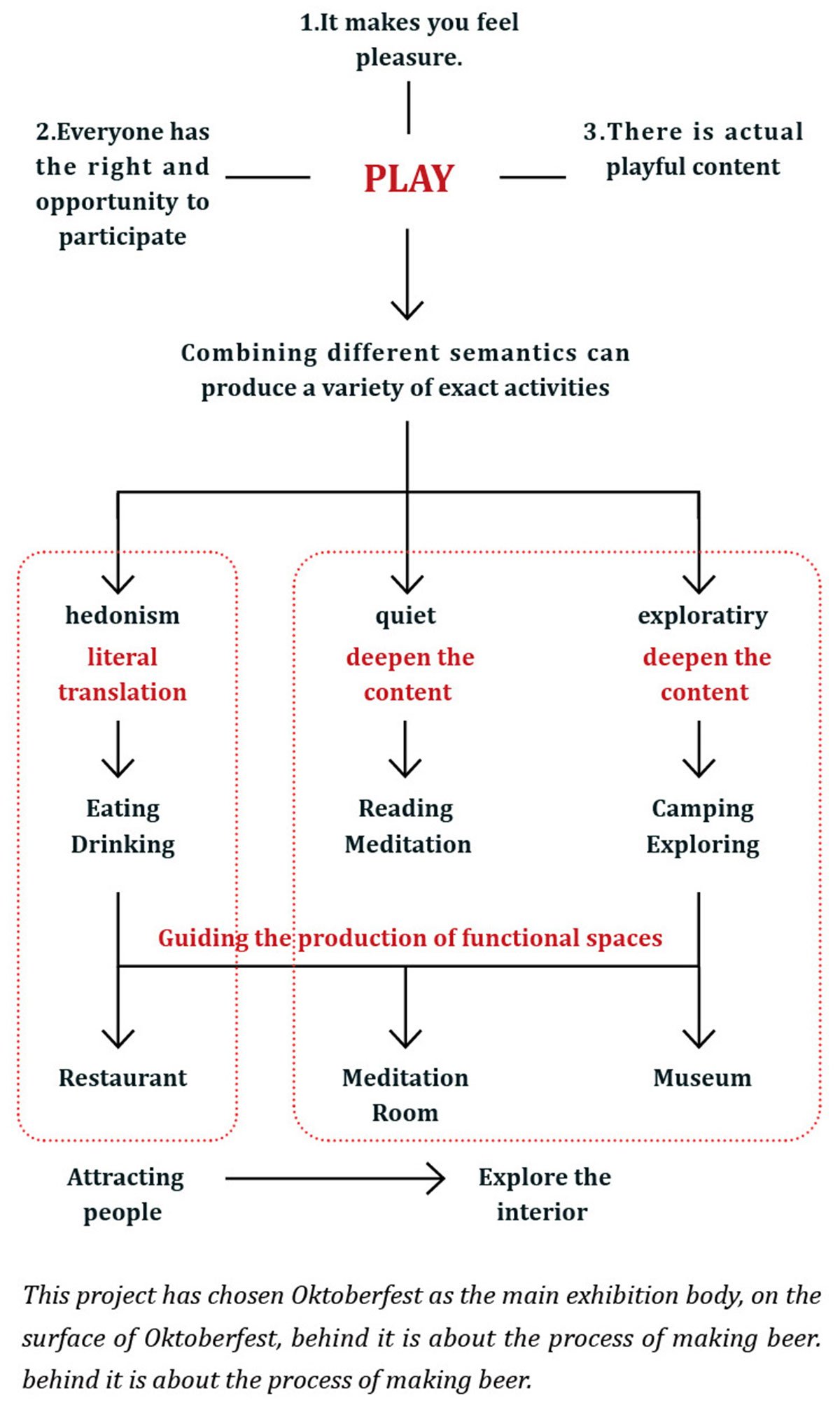 Key Typology of Different Festivals: The primary festival featured in this selection is BEER FESTIVAL. After a thorough analysis of the event, it was determined that beer manufacturing, which is a significant industry supporting the festival, is largely unknown to the general public. As such, it could serve as the centrepiece exhibit for the museum. When examining the entire beer production process, the arrangement of all the machines can serve as a guide for the movement of the figures within the museum, and the sequential discharge of the machines can direct the march of the figures.