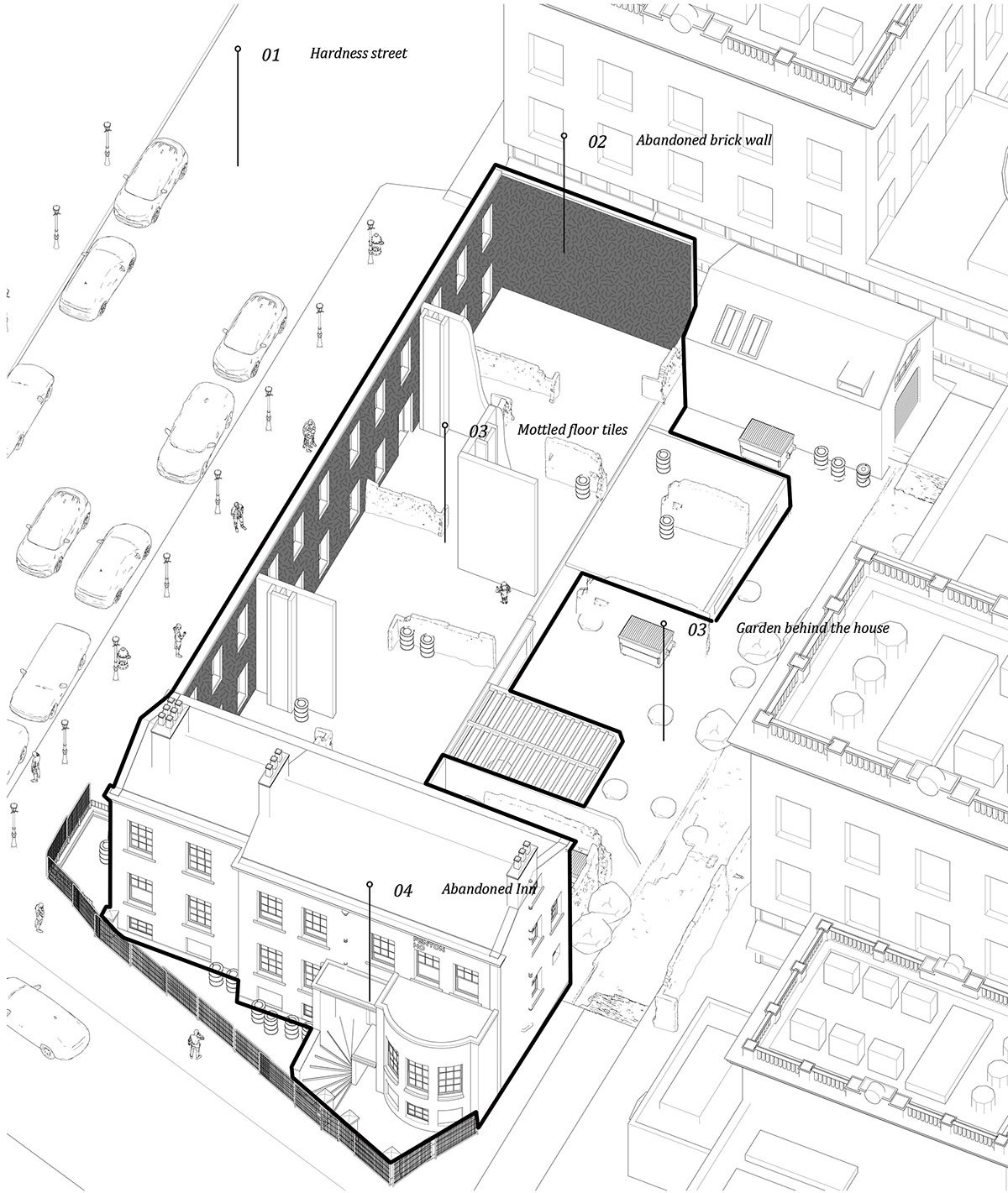 Street scale of the interface analysis defining the influence of the reuse of the ruined wall | Analysis of the Existing Site Material
