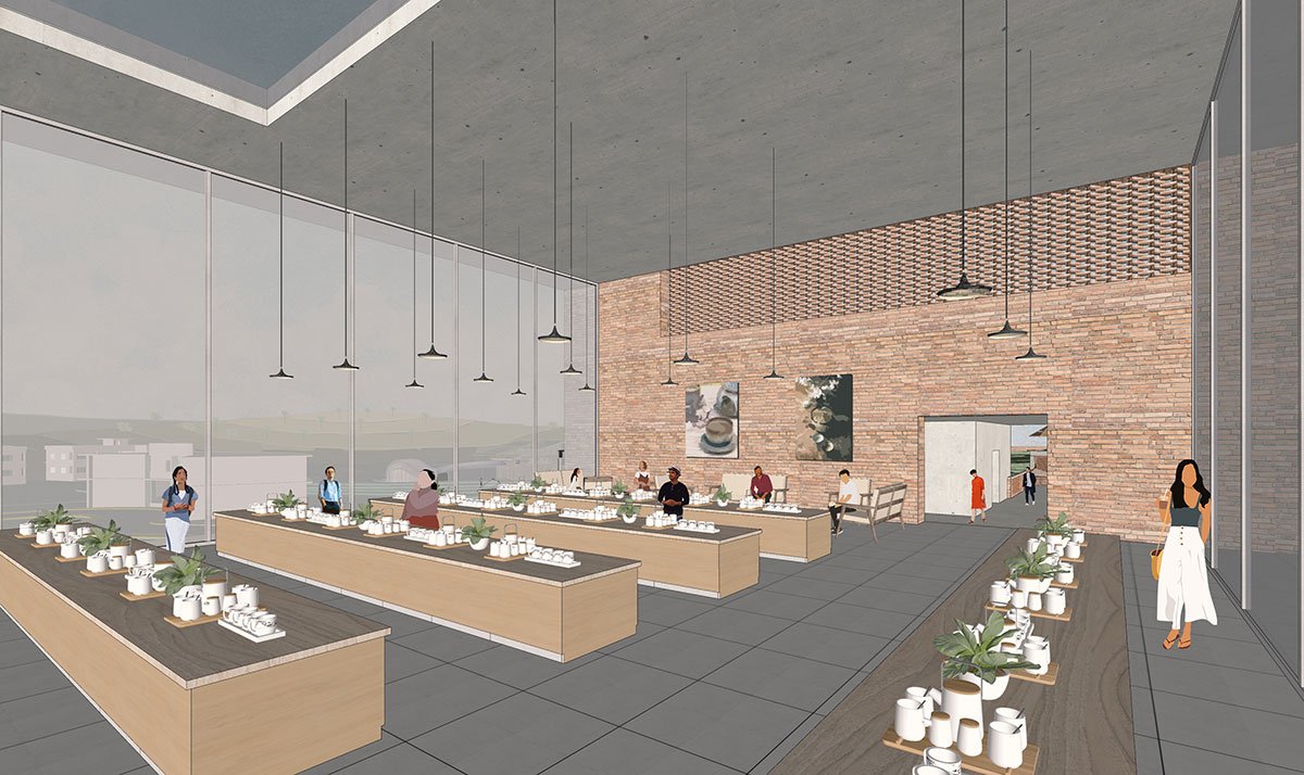 The amphitheatre respects the site’s undulations. A few souvenir shops are situated right beneath the public gathering space, where visitors can buy different kinds of tea that are made there. Additionally, it facilitates and enhances interaction between the tourists and the tea workers.