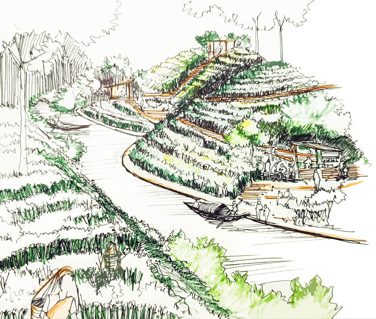 By updating the current facilities and adding new components, the entire facility will be redesigned to promote better functionality and symbolise the idea of tea celebration while allowing users to stay true to the spirit of tourism and the research process. A plaza, a tea museum, an amphitheatre, a greenhouse, Tong modules, accessible tea cultivation zones, and the refurbished research institution will all be part of the new complex.