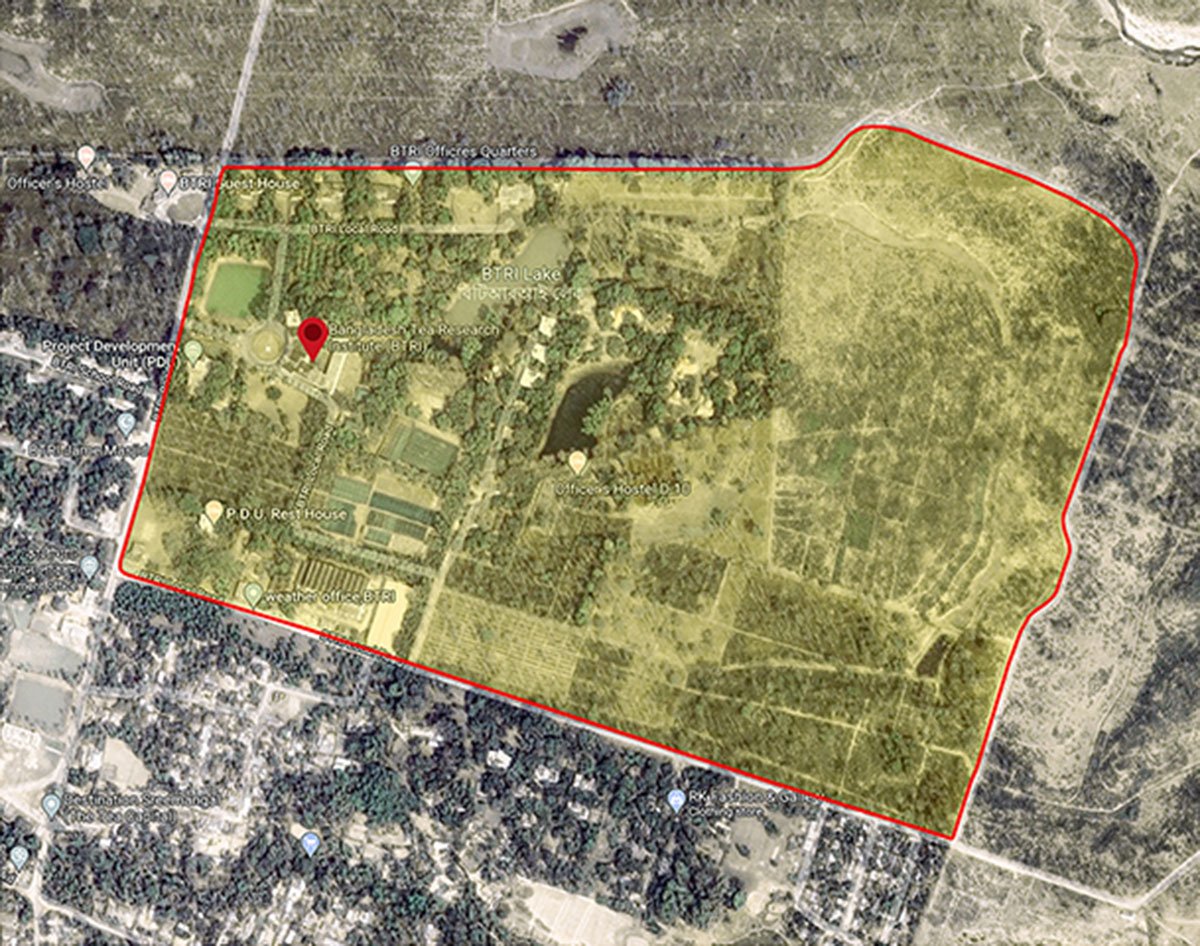 The existing institute is situated nearly 3.8 km from Sreemangal and 66.25 km from Sylhet town in Bangladesh. From the outside, one can observe that the site is 194 feet high at its highest point and 119 feet low. There is currently only one entry accessible for users.