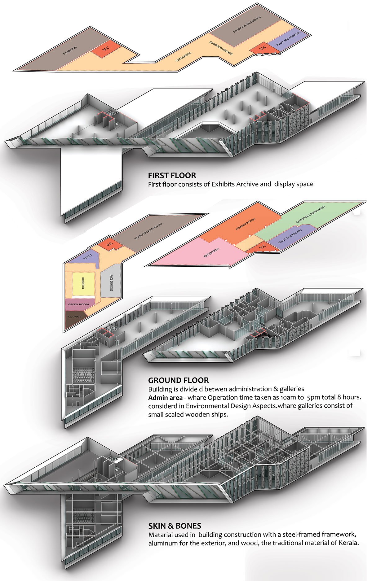 Cultural Elements: The project blends traditional Kerala architectural features with contemporary design and construction methods, exploring optimum forms and program arrangements within the museum’s intricate woodwork and intricate woodwork.