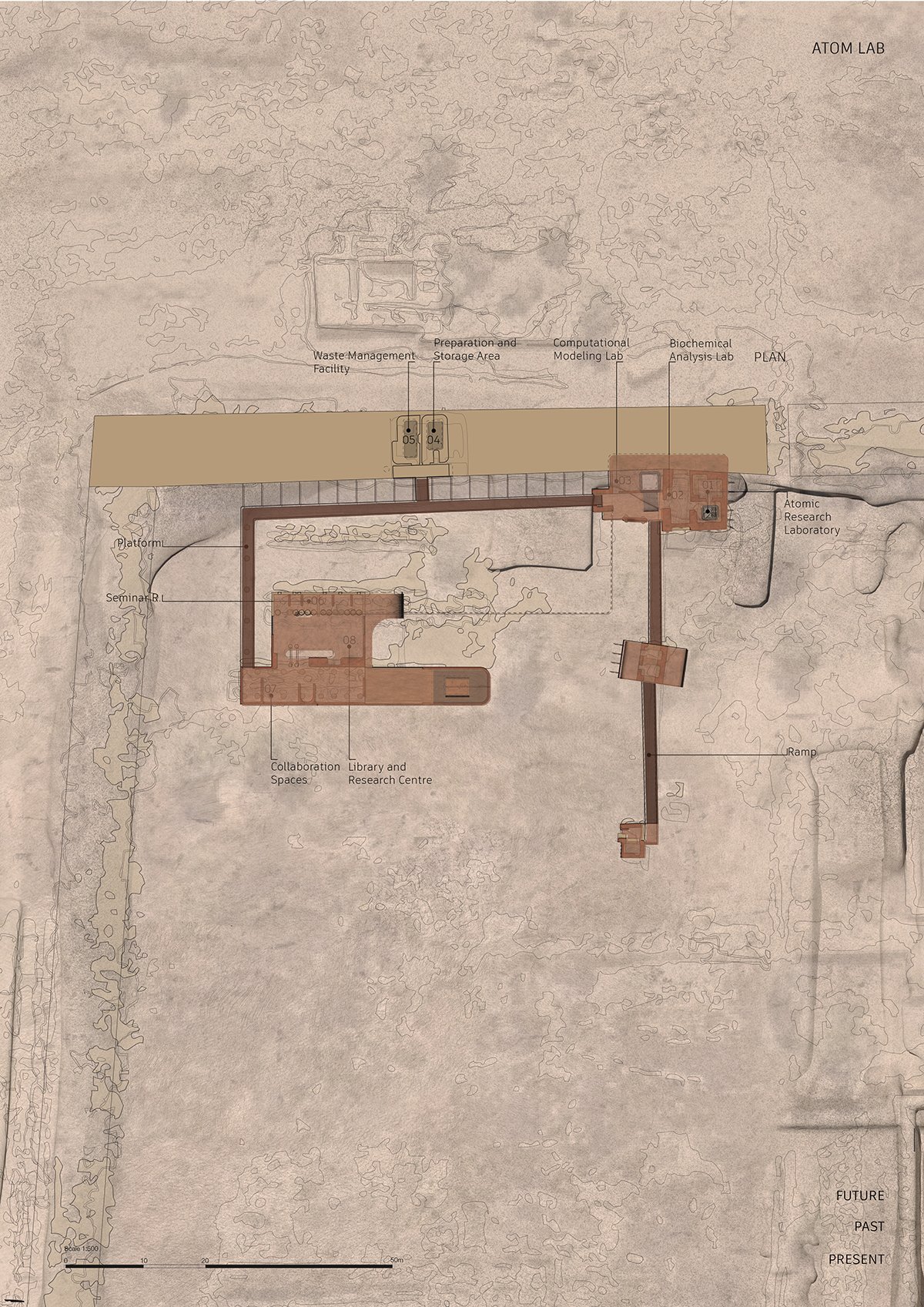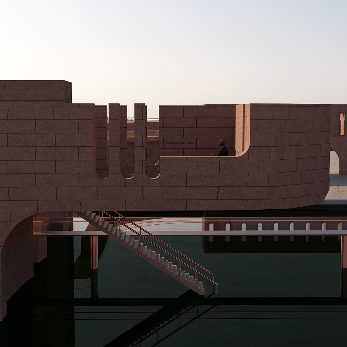 The proposal reinterprets this heritage through a contemporary program that organizes the city into three main research realms—Faith, Philosophy, and Science. Facilities include the Rebirth and Resurrection Sanctuaries, Ritual Centres, the Atom Observation Lab, and the Quantum Consciousness Lab. Communal spaces such as ceremonial halls, performance areas, and public learning platforms foster community engagement, while research facilities explore metaphysical and material dimensions of life after death. The city becomes both a cultural pilgrimage site and a future-oriented research hub.