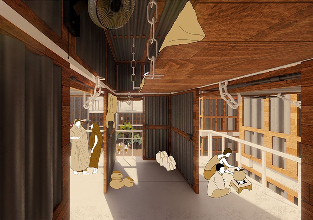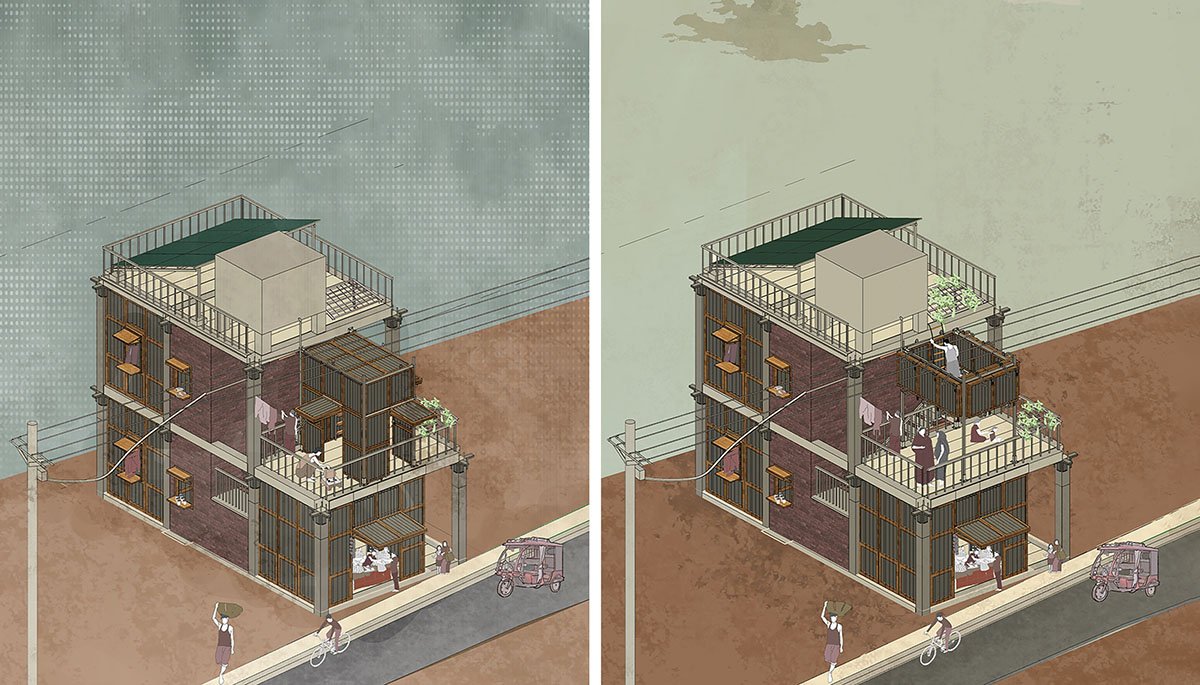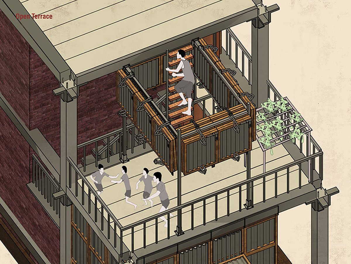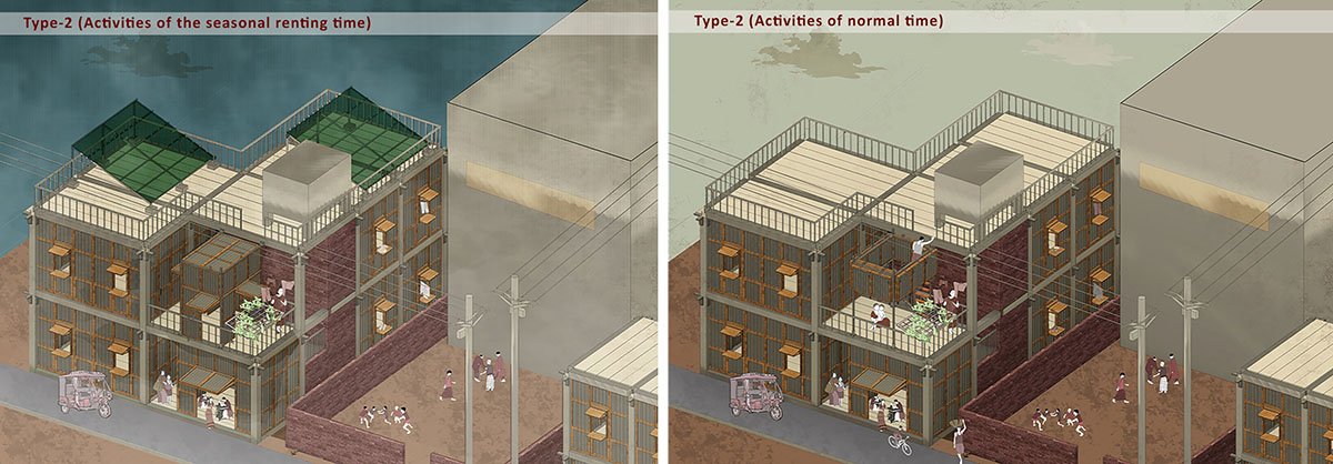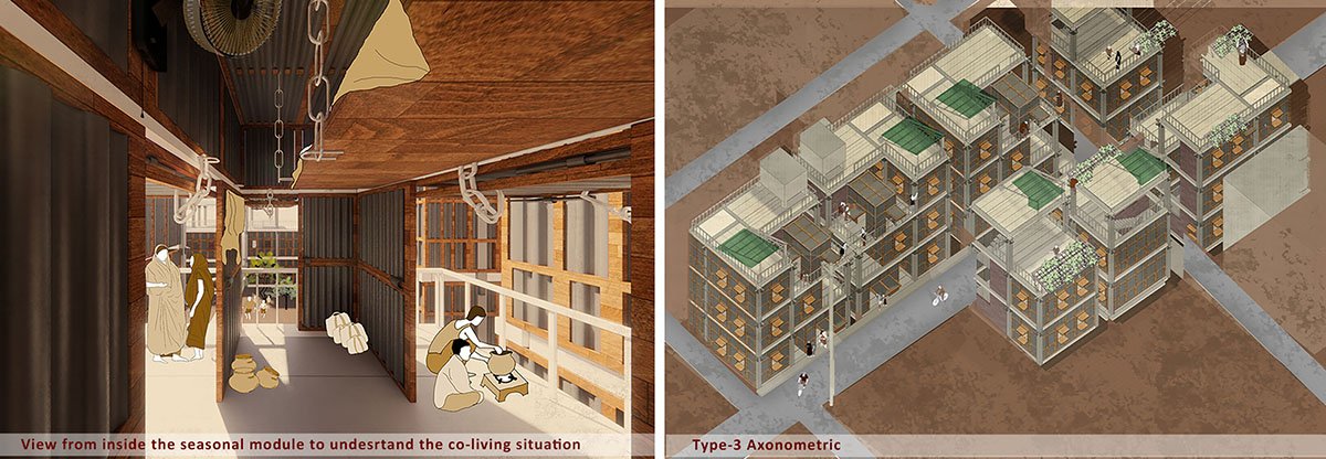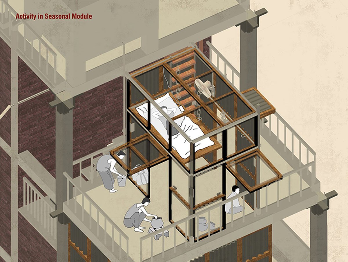 View From Inside The Seasonal Module To Understand The Co-Living SituationView From Terrace When Seasonal Renters Come To City For WorkPhysical Model