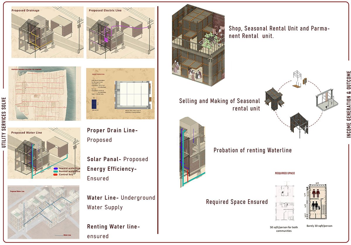 A more sustainable and inclusive approach lies in upgrading existing communities rather than displacing them. In the case of Chanpara, this involves improving housing and infrastructure to support both permanent and seasonal residents.