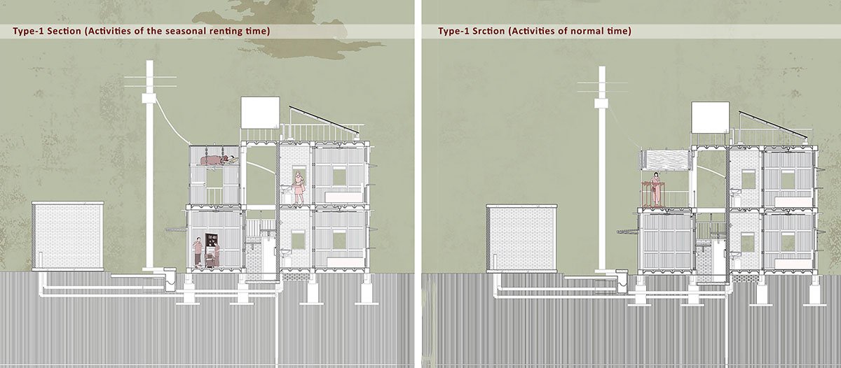 Section: Activities Of Seasonal Renting Time And Normal TimeAxonometric: Activities Of Seasonal Renting Time And Normal TimeAxonometric: Activities Of Seasonal Renting Time And Normal Time