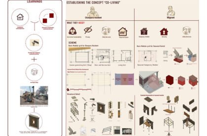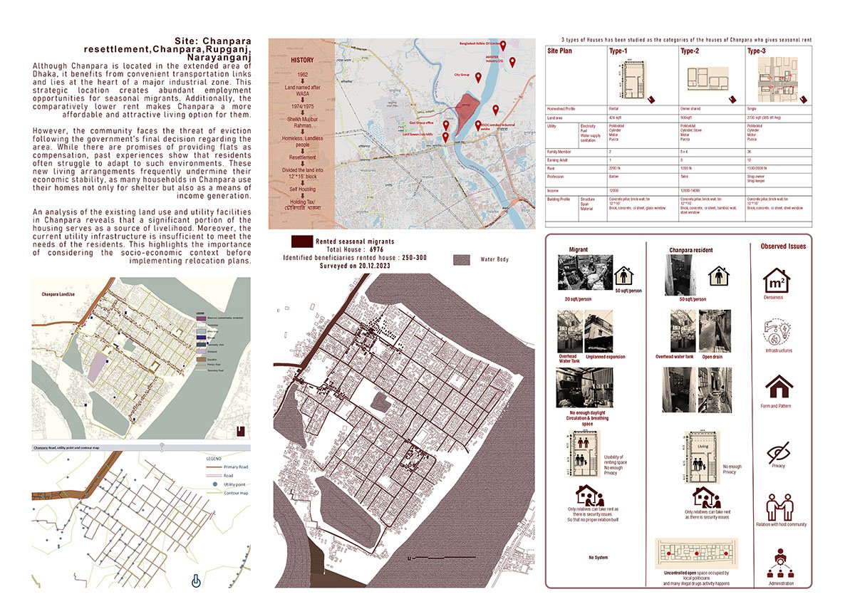 Excerpt: ‘Co-Living with Seasonal Migrants’ is an architecture thesis by Musarrat Salsabil Chowdhury from the ‘Department of Architecture – Bangladesh University of Engineering & Technology (BUET).’ The project aims to create sustainable, community-based housing as an alternative to the proposed high-rise redevelopment in Chanpara. By upgrading existing homes and shared spaces, it seeks to improve living conditions, support seasonal migrants, and strengthen local livelihoods through participatory design, better infrastructure, and inclusive community development.