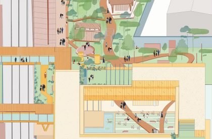The station complex was imagined as a public park that provides opportunities for improving eudemonic well-being, an urban space that comprehensively unites different uses to create moments of pause and interaction.
