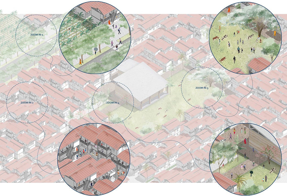 Despite bearing the brunt of the city’s waste, the workers from Deonar are viewed as outsiders and are thus rendered invisible. This proposal seeks to acknowledge and give voice to the impoverished rag-picking community that lives next to a landfill that is over 123 years old. The goal is to improve living conditions, address environmental issues, and restore dignity to these communities by encouraging self-building through effective waste recycling, using locally sourced materials, and putting green-and-blue infrastructure into place.