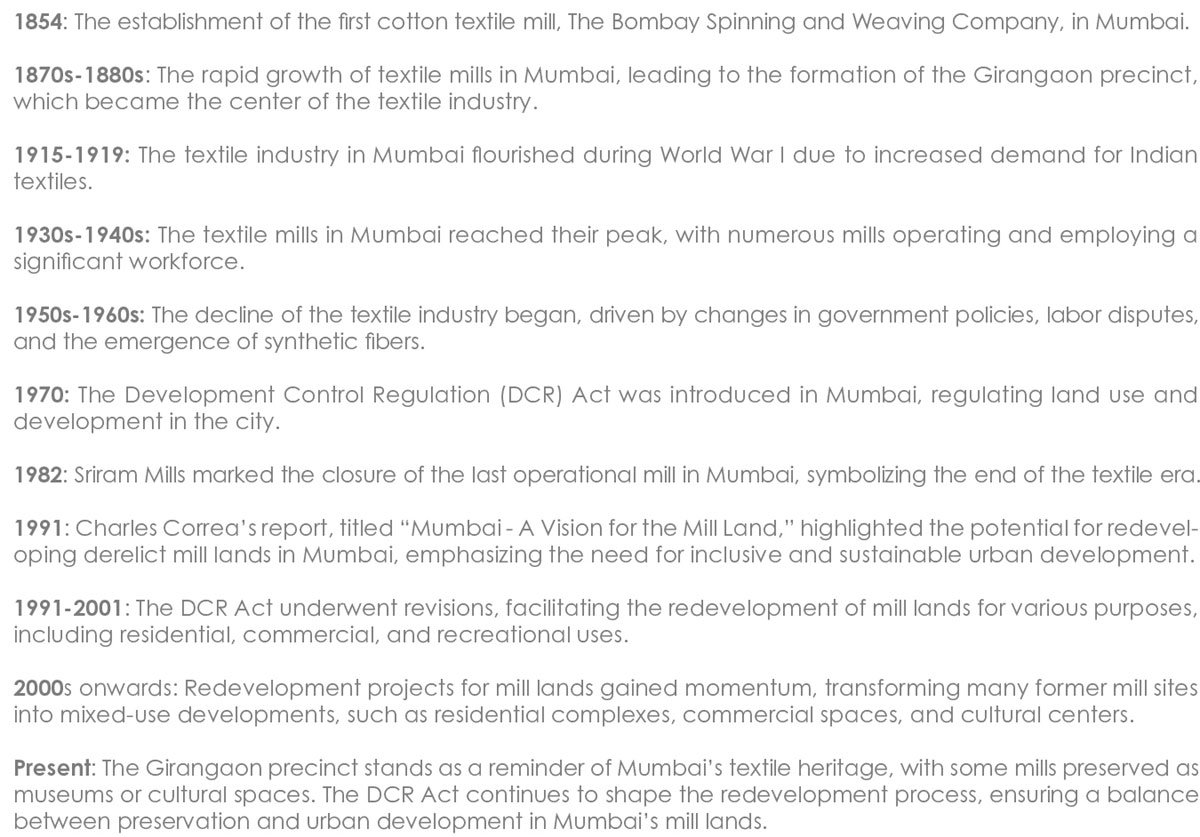 This architecture thesis aims to repurpose abandoned textile mill land in Mumbai, Maharashtra, India, into a vibrant, sustainable public space. The industrial site, once a hub of activity, has been neglected and decayed, highlighting the social and cultural divide within the urban fabric. The project aims to address the numerous issues associated with abandoned industrial areas, such as economic, technological, and urban planning changes, and create a welcoming and sustainable public space that meets community needs.