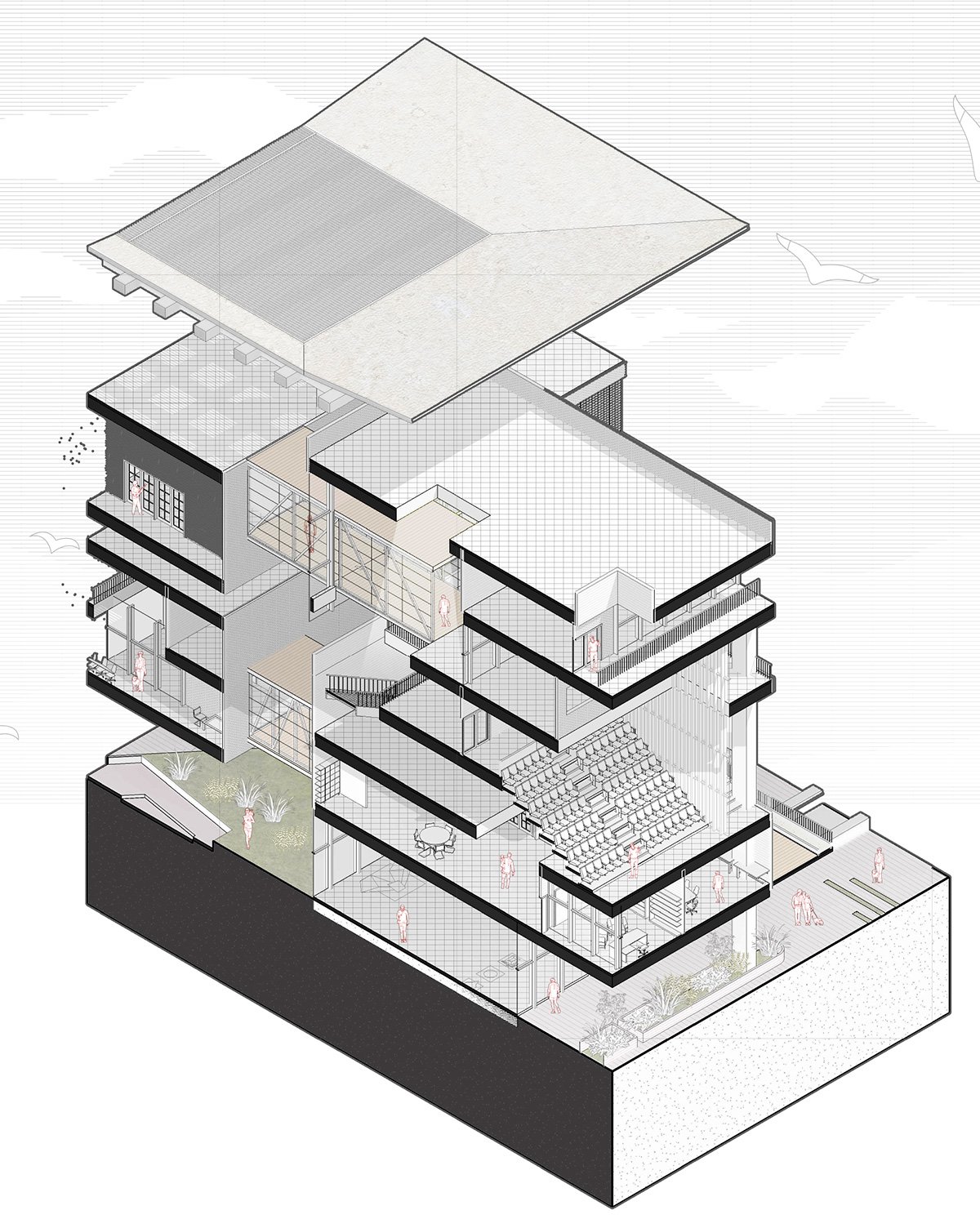 Additionally, it encourages social interaction through accessible public spaces—such as galleries, contemplative gardens, and open-air theaters—that invite community participation. Sustainability is also a key focus, achieved through passive bioclimatic strategies that minimize environmental impact while enhancing indoor comfort.