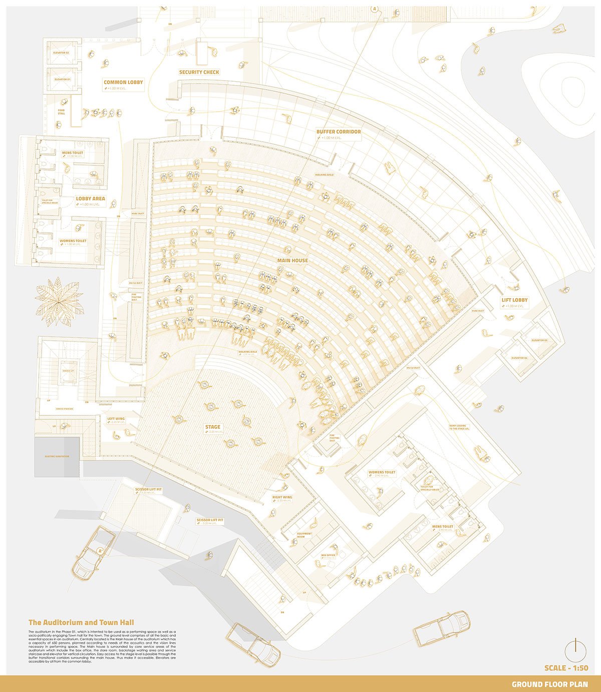 Phase 01Phase 01: Site plan through the first Phase of the proposal – Building an auditorium blockPhase 01: An Auditorium and Town Hall