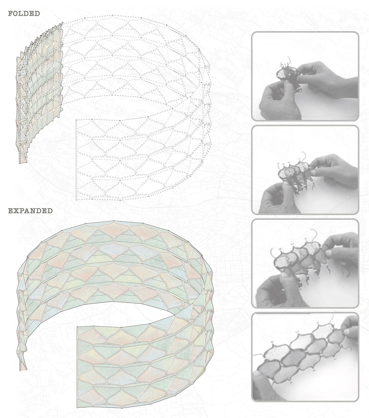 Physical model of the triangulated fin rotating façade.