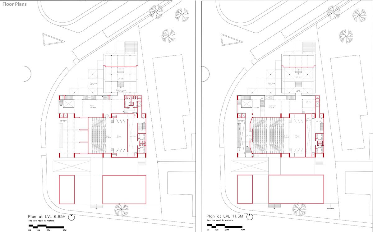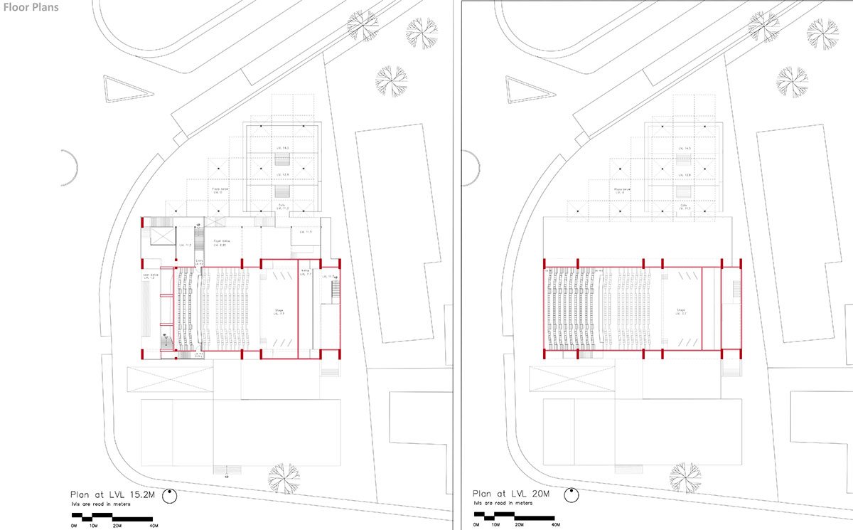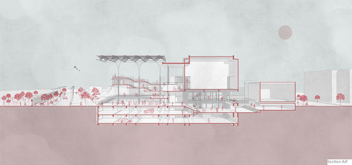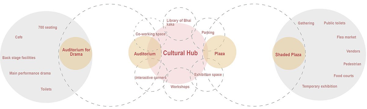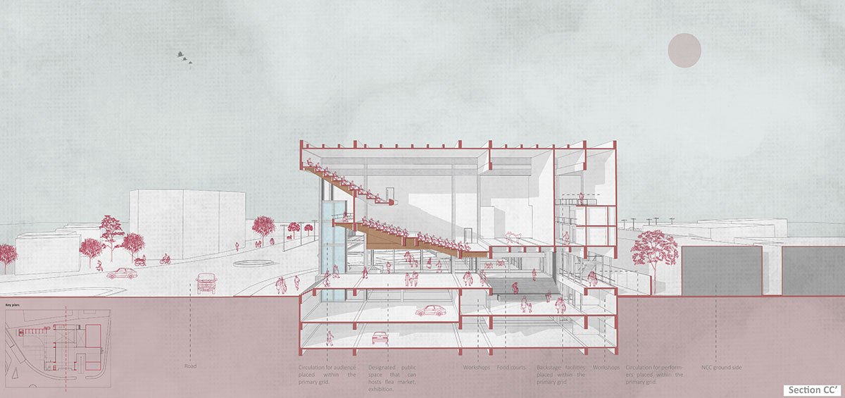 Area program: In order to enable interaction between the city and public institutions a cultural hub is proposed as the centre of all activities. To make the experience of watching a live performance much richer, ancillary areas like workshops, exhibitions, cafes, plazas, and libraries are included. These spaces will encourage informal interactions between the institution’s users and the local community, which is currently missing.