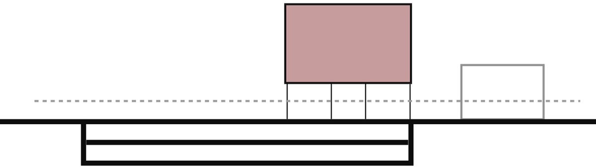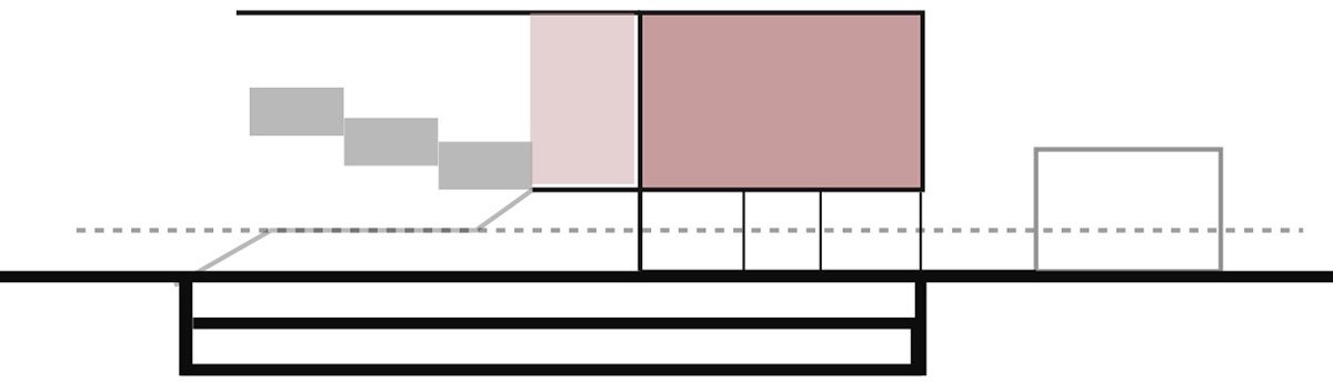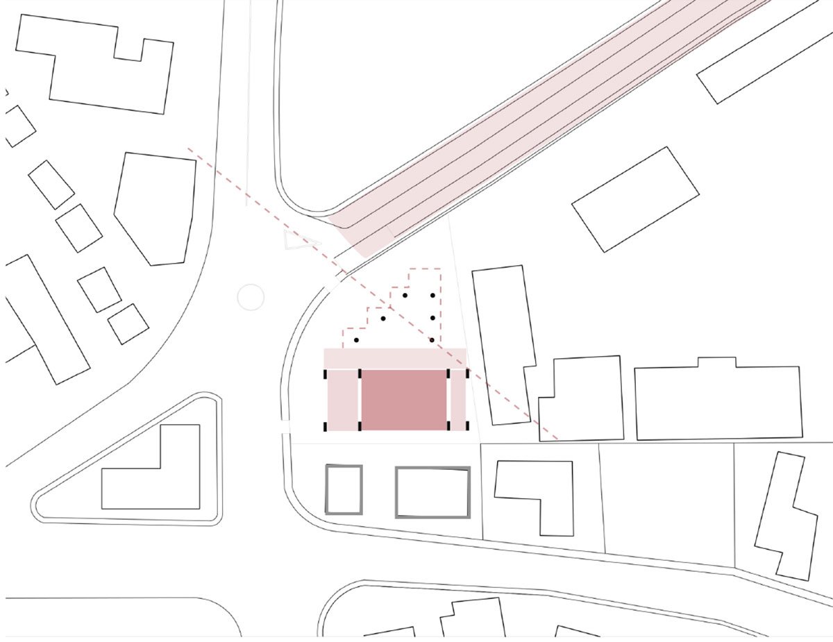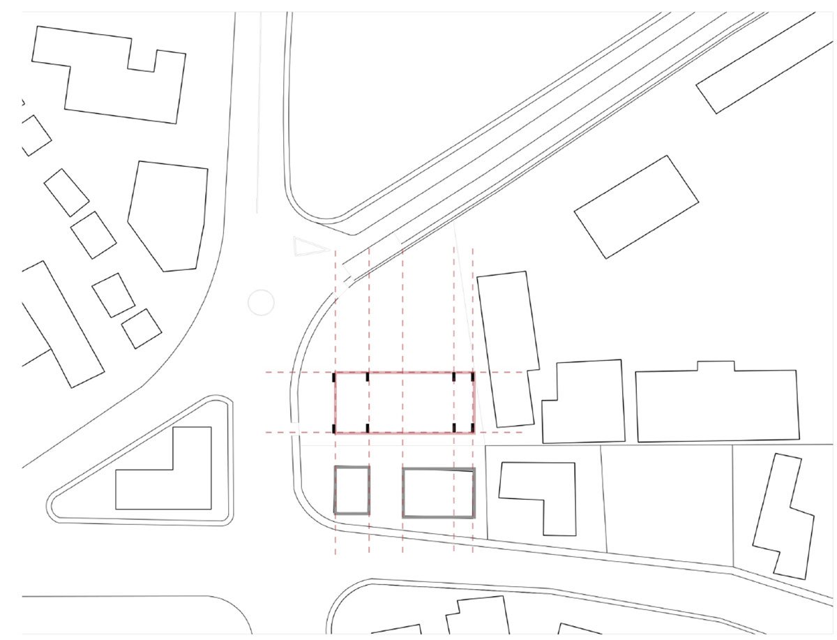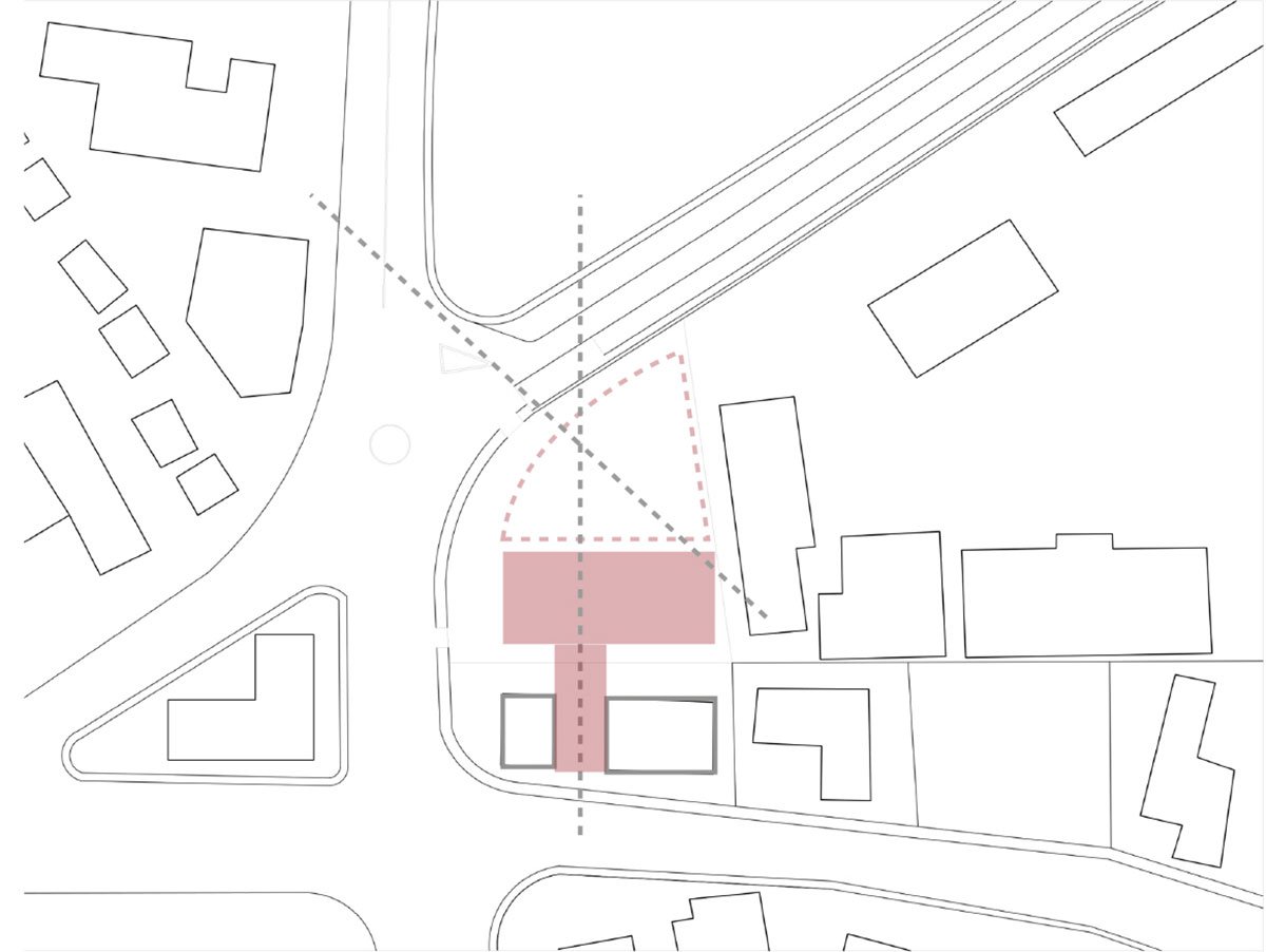 3. Combining the institution: To achieve smooth pedestrian movement, the plaza and canopy are aligned with Bhai Kaka Bhavan, also addressing the potential for a public intervention to enhance its surroundings.