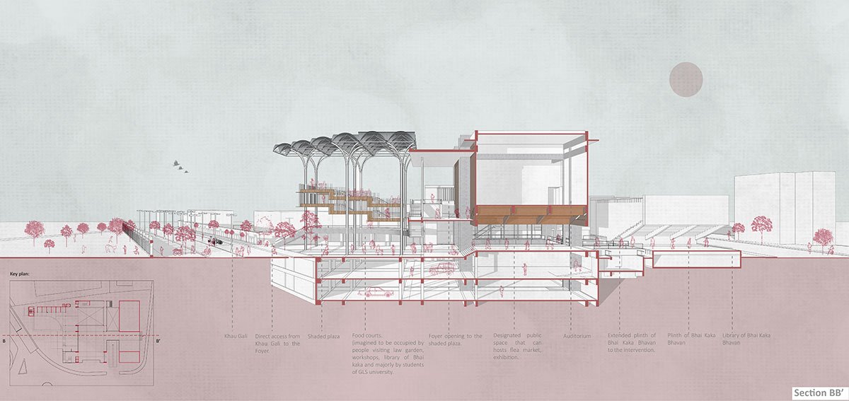 Excerpt:‘INTERLACE’ is an architecture thesis by Nishanth Krishna from Faculty of Architecture, CEPT University, that seeks to reinterpret public interventions in the city in order to better respond to the current urban conditions. The aim of this project is to redesign Thakor Bhai Hall while taking into account its context and the issues that it now faces. By attempting to establish a dialogue between the institutions and the informal activities taking place nearby, the project serves as a catalyst for carrying the heritage of Khau Gali into the future.