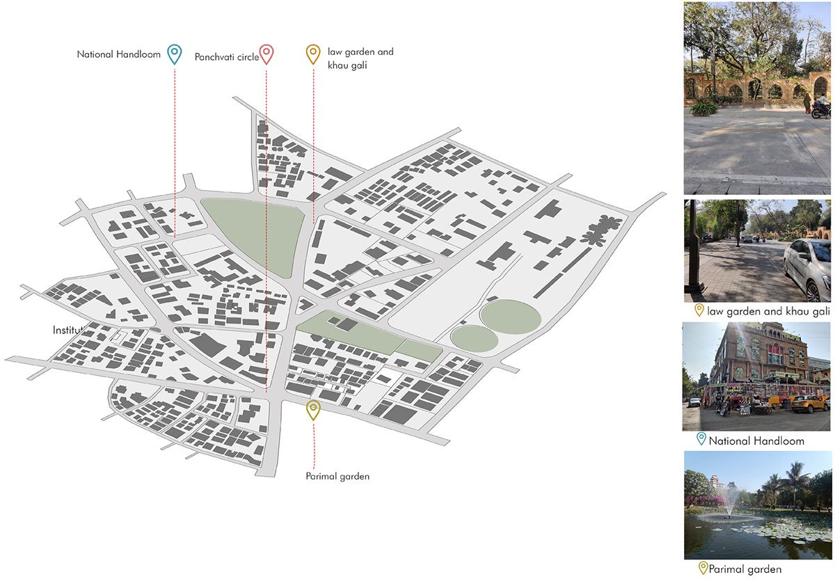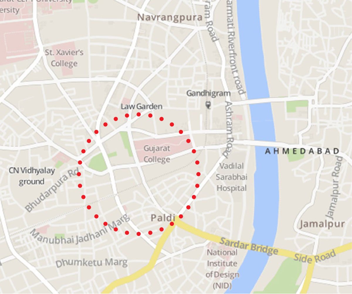 A lot of activity can be seen on the edges, and there is a lot of traffic on the roads, both vehicular and pedestrian. The primary public spaces near the site include Khau Gali (Food Street), Law Garden, Chaniya Choli Street Bazaar, Horse-Camel Riders, and Nature’s Park. The area’s residents are primarily from the upper or middle classes. The houses of Ahmedabad’s mayor and judges are also located in this region.