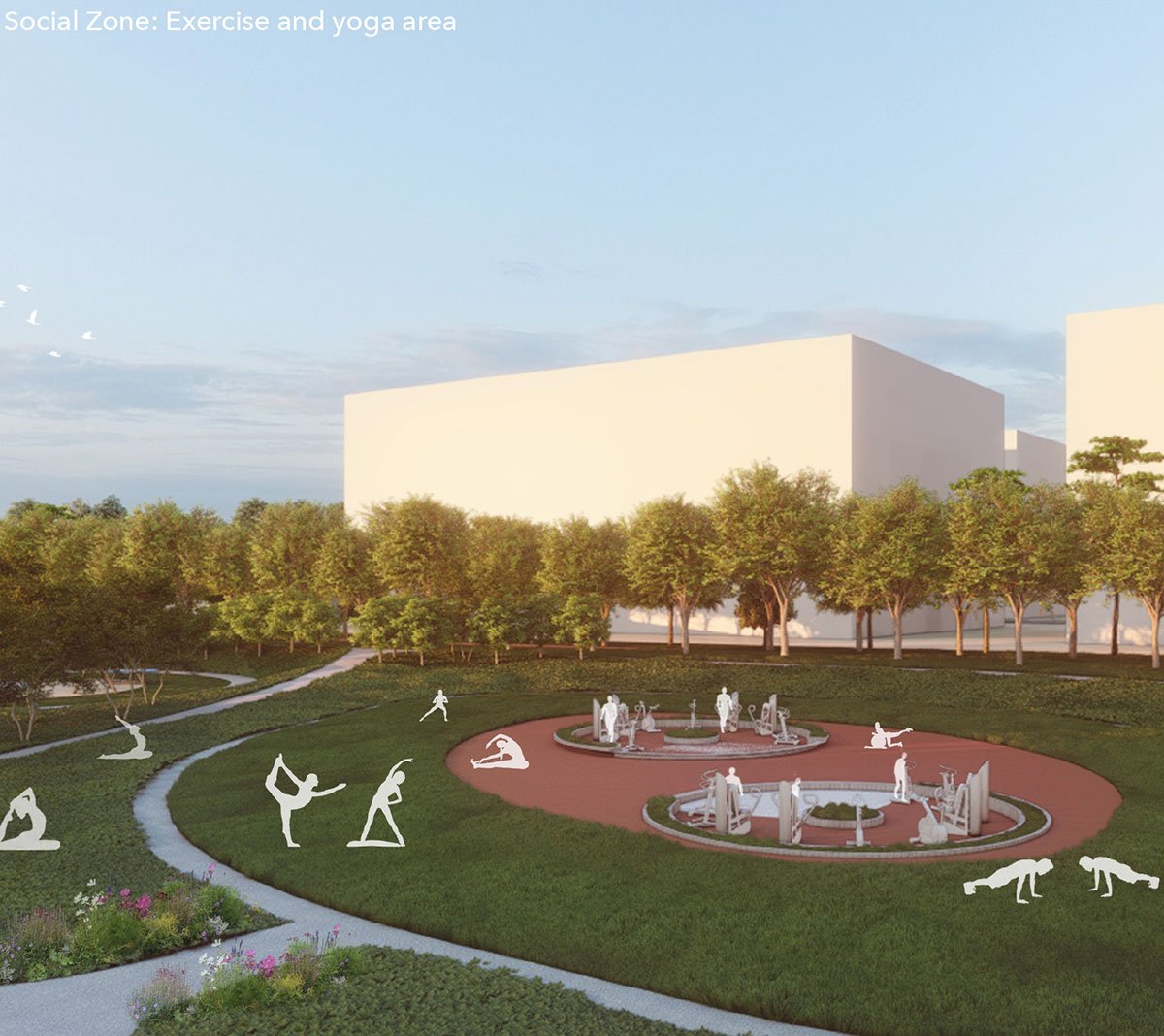 The Social Zone gradually meets the Serene Zone through meadows, which provide people with an opportunity to spend time in nature without engaging in a specific activity, but overlooking all the natural elements and activities happening around them