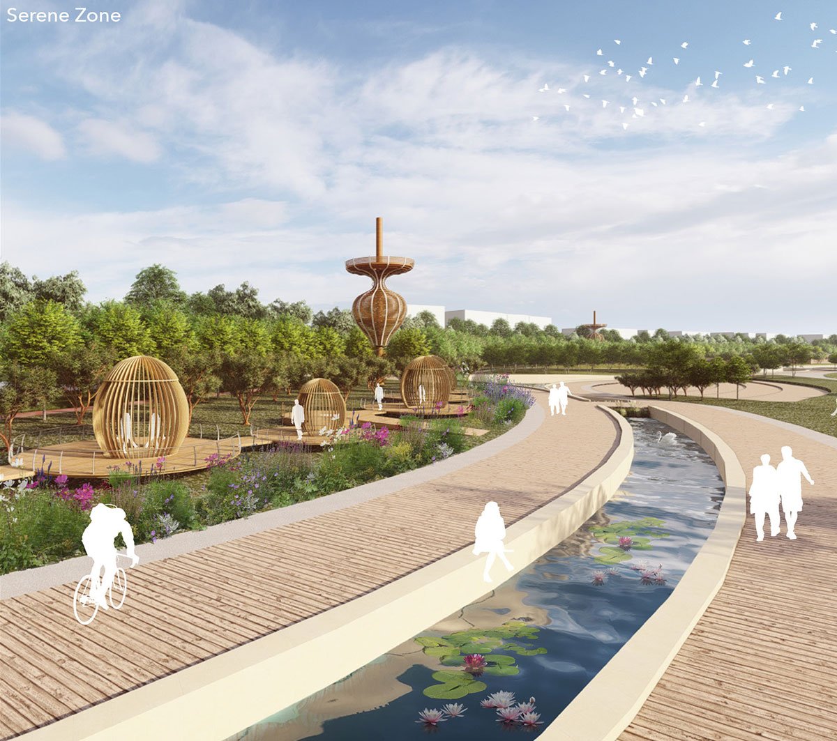 Serene zone focused on calmness and tranquillity which allows people to feel directly connected to nature, away from built infrastructure.