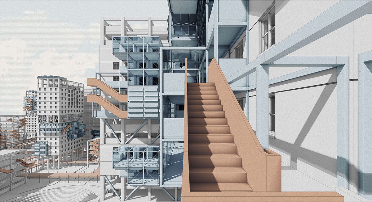 Introduction: The Plug-In Community project seeks to address the ongoing social and spatial segregation in Coney Island, a legacy of earlier housing projects, especially those led by Robert Moses. This architectural initiative re-envisions the Luna Park Housing Corporation as a connective, inclusive space, promoting interaction between residents and visitors through innovative design. By introducing elevated walkways, rooftop public spaces, along with new housing and community services, the project establishes an integrated network that strengthens both social and spatial connections.