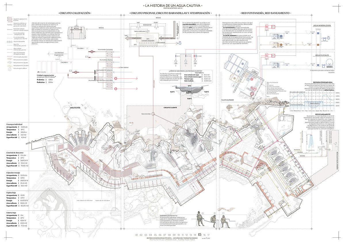 [Text as submitted by architect] The existing consumption model is outdated, and architecture is no exception. Critics assert that adopting a new approach is not just preferable, but necessary. This project examines how construction methods, influenced by degrowth theories, can transform architecture and foster healthier environments. Using the example of a thermal leisure center in a deserted quarry in Sierra de la Culebra, a prototype of a degrowth strategy for architecture is developed. Following the destructive wildfire in 2022 that devastated the region’s biodiversity, underlying issues such as depopulation, climate change, and an outdated economic model based on unchecked resource extraction were exposed.