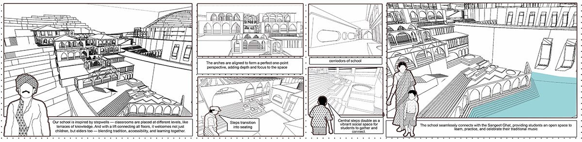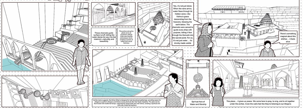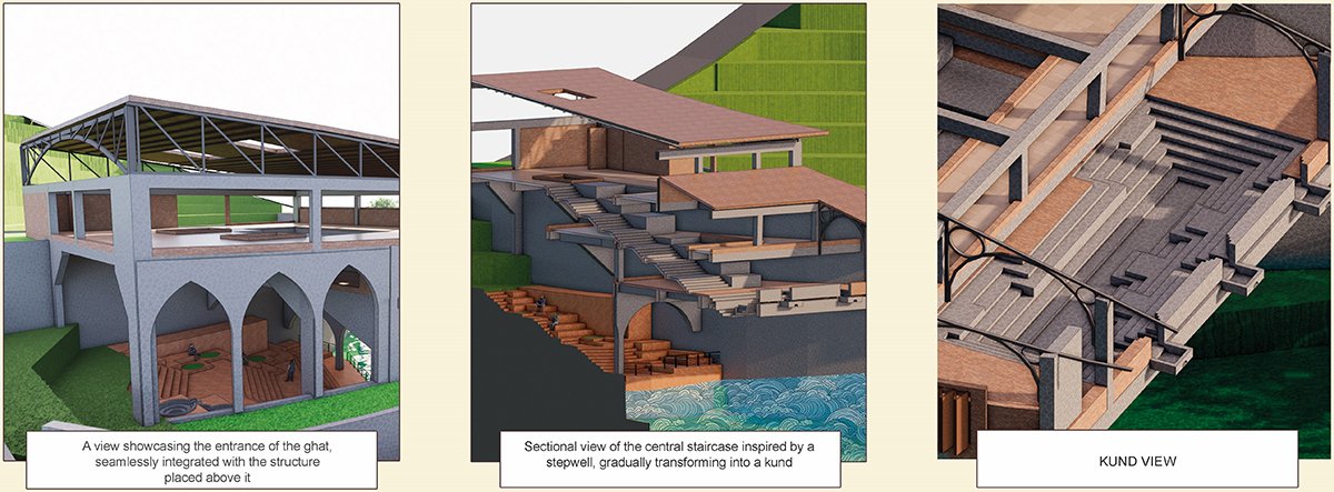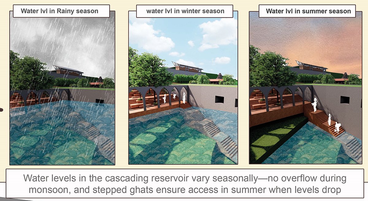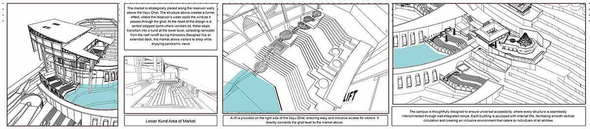 Rooted in field research and local engagement, the project also tackles outmigration, declining traditions, and the loss of communal spaces linked to water insecurity. Reimagining water as both a sacred resource and social connector, the design seeks to restore ecological balance, cultural pride, and community cohesion.