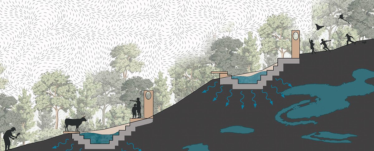 By making use of the natural watershed and reviving traditional water practices, Pravah aims to reconnect people with water, restore cultural values, and create a sustainable prototype for nearby villages.