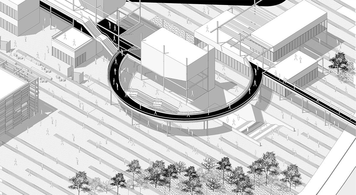 Design Sketches | Master Plan: Triangulation of Experience. Harmony in Chaos. A Dream in a Universe of Possibilities.Design Section: “The creation of a timeless and placeless aura within the boundaries of this ambiguity emerges by blurring the perceptual and spatial limits formed in the process of making sense of the city.”The third phase addresses the structural density of TMO Silos, Haydarpaşa Train Station, and the railway tracks connecting to Kadıköy. Recognizing these elements as significant industrial heritage, the silos are repurposed as research hubs, and the train station becomes a Railway Museum. Railway tracks are transformed into a railway garden, featuring installations and heritage displays, enhancing spatial flow and preserving memory.