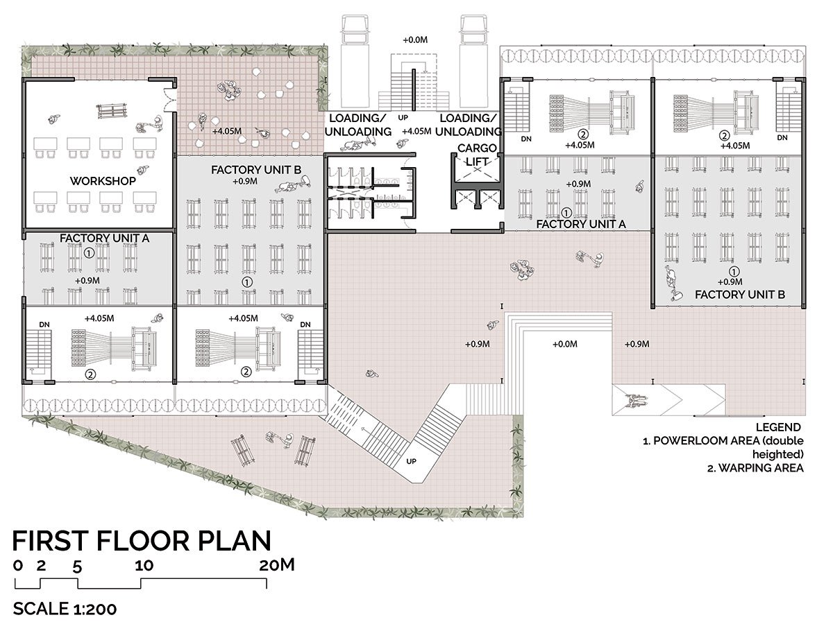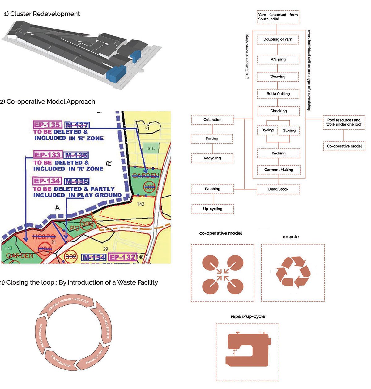 The project emphasises the need to create a microclimate inside factory spaces to allow for light, ventilation, lower temperatures, and lower noise emissions in Bhiwandi’s hot and humid climate. It also aims to design spaces for maximum human comfort. Lastly, the project mandates a need for a waste recycling facility for textile industries, which has large environmental implications. It addresses various methods of closing the loop and repairing recycling, or upcycling fabric waste to include it in the circular economy.
