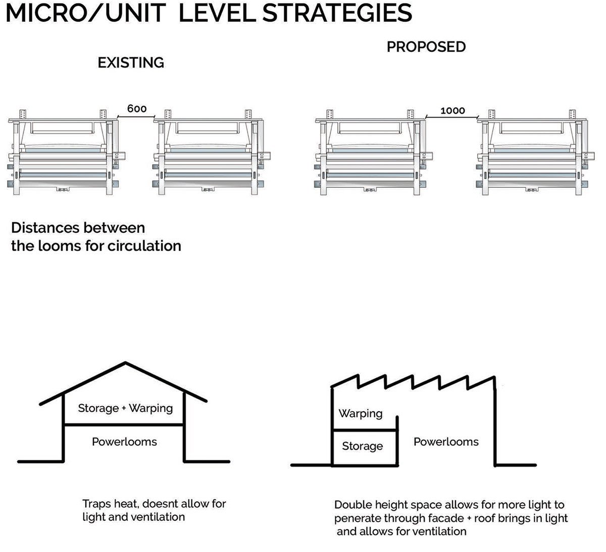 The project is situated in Bhiwandi, in the Mumbai Metropolitan Region (MMR), which is one of the largest textile industries in India. These facilities usually experience higher temperatures than the surrounding area because of several large machines, small, crowded units, and unhygienic conditions. The heat inside is trapped by the multiple machines operating at the same time and the lack of proper windows or ventilation, which exacerbates the situation.