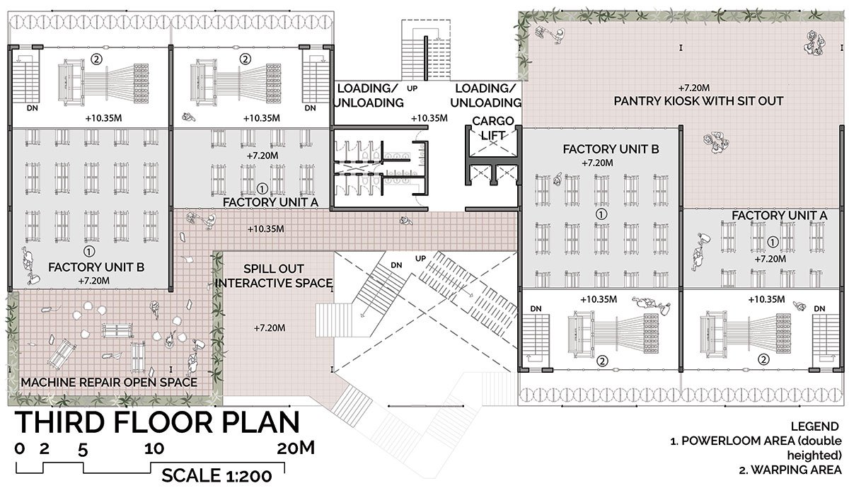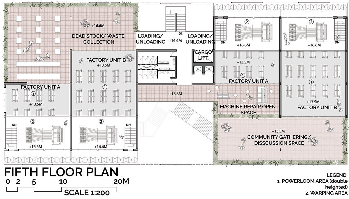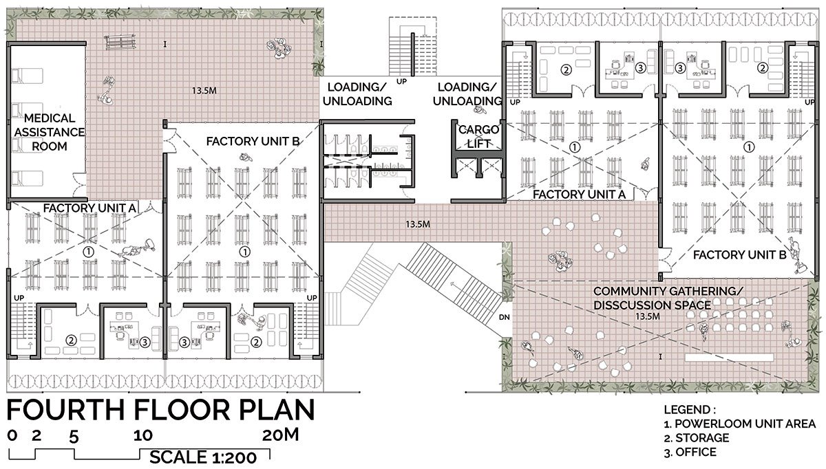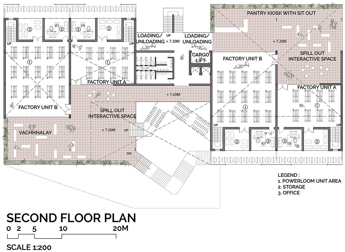 Excerpt:  [Re]- Factory : An Alternative to Sweatshops in Fast Fashion’ is an architecture thesis by Tvisha Ranpuria from the Kamla Raheja Vidyanidhi Institute of Architecture and Environmental Studies (KRVIA) that seeks to develop a factory module that improves working conditions and provides a holistic environment for workers. The project emphasises the need to create a microclimate inside factory spaces to allow for light, ventilation, lower temperatures, and lower noise emissions in Bhiwandi’s hot and humid climate and aims to design spaces for maximum human comfort.