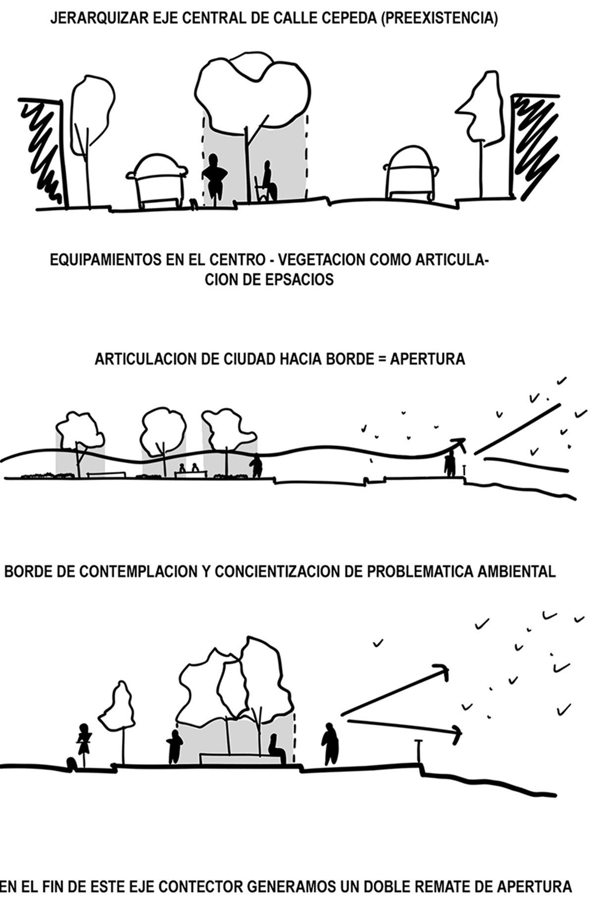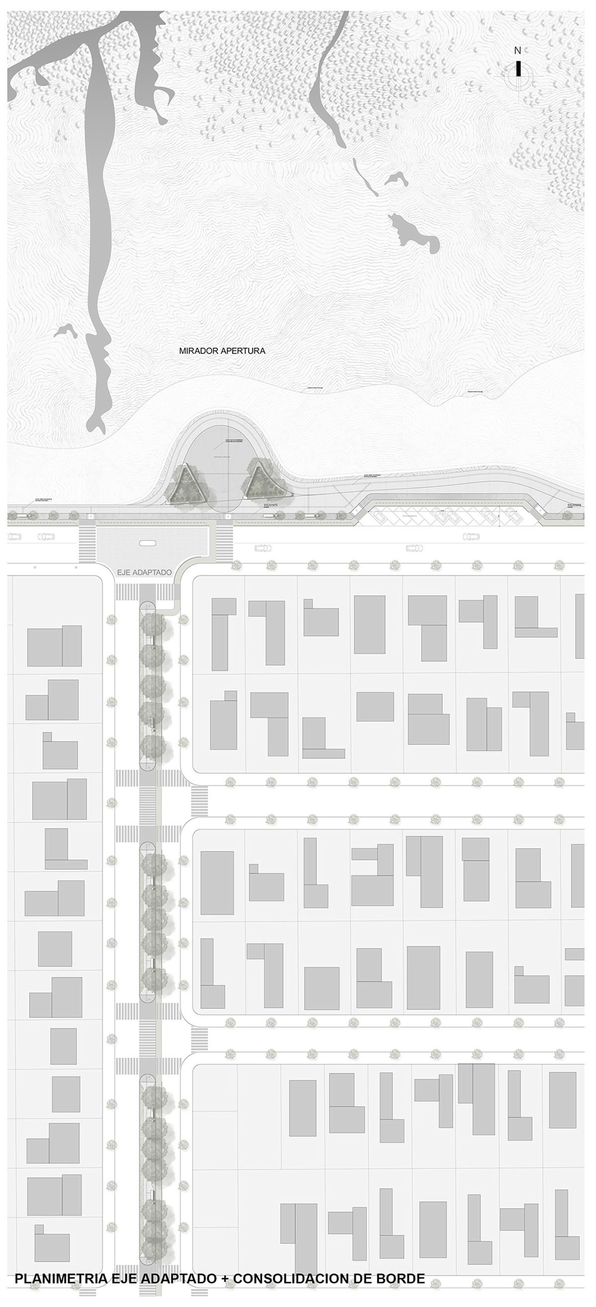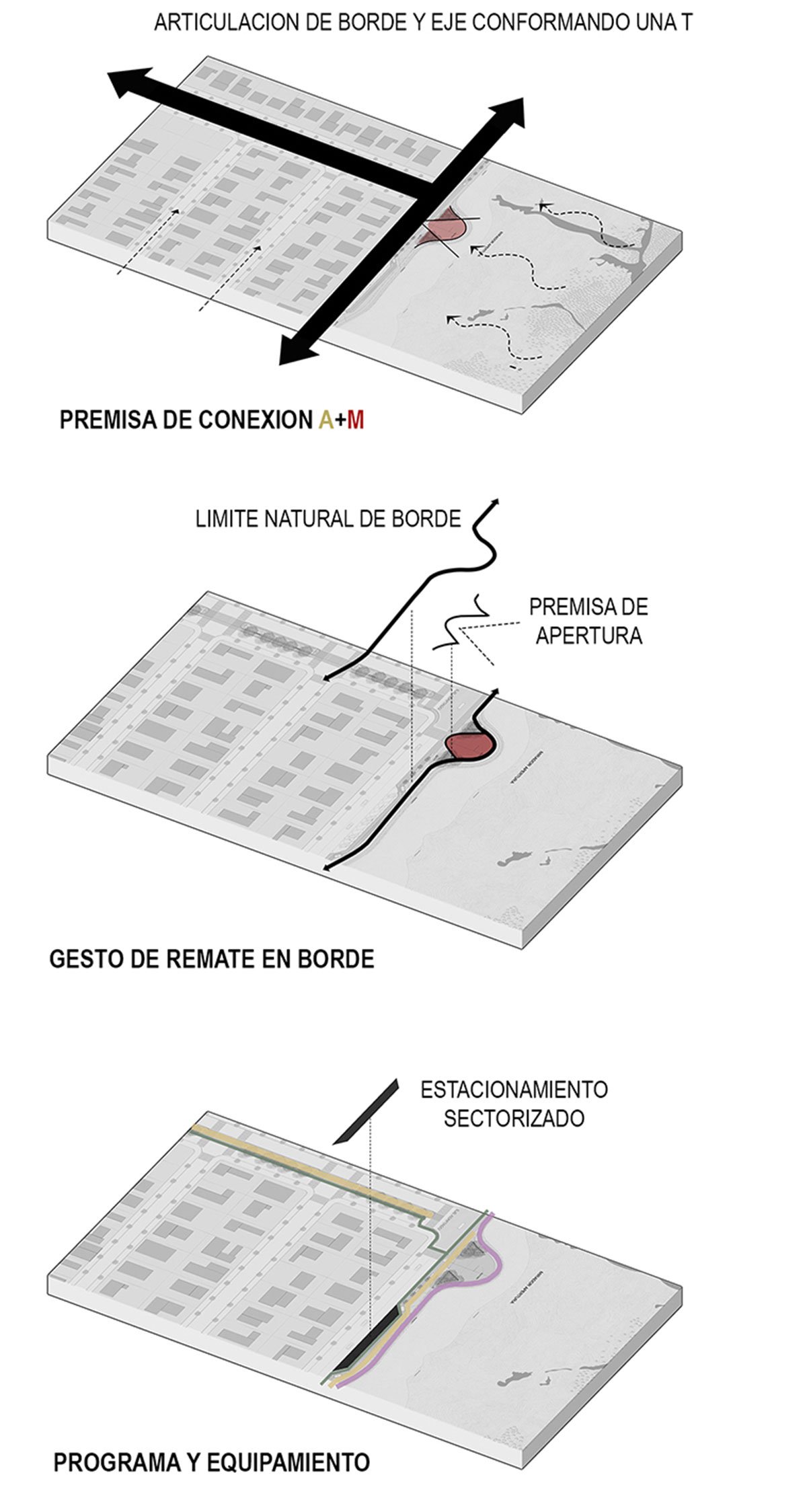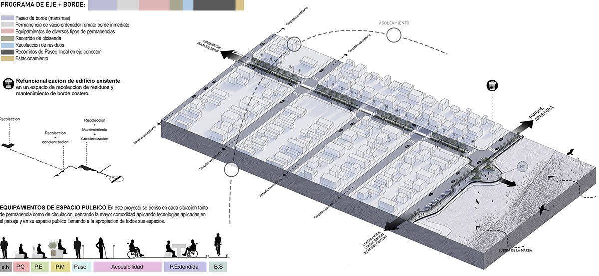 This proposal seeks to address the issue by emphasizing the coastal edge, encouraging the city to integrate this consolidation through a series of axes or ribs extending toward the shoreline. This approach aims to slow urban expansion while fostering awareness of the estuary’s ecological significance.