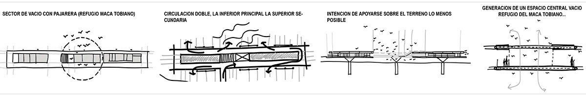 Aviary Node: This space is designed for the preservation and appreciation of the maca tobi-ano, a rare and endemic bird exclusive to the provincial territory, currently endangered and declared a natural monument by the Santa Cruz legislature. The project establishes a dedicated refuge to support its conservation while allowing for the observation of both the species and its natural ecosystem.