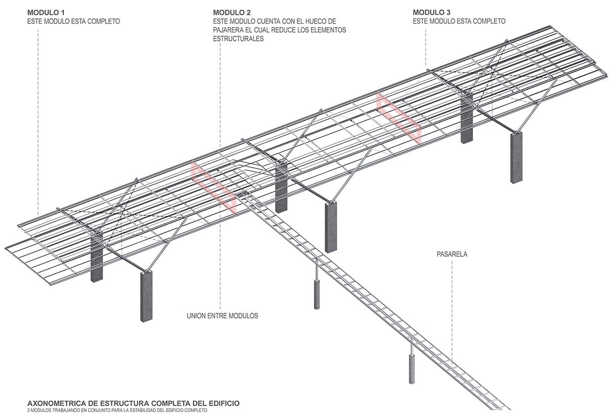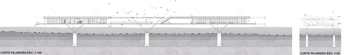 Rise and Fall of Water LevelAviary Axonometric | Roof Maintenance System of AviaryMaca-Tobiano Interpretation Center “CIMT”
