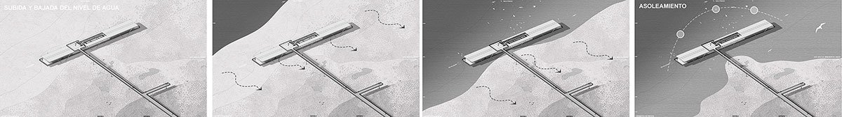 To structure the study and implementation of this urban intervention, the project is divided into three stages, each addressing different interactions with the city. These stages aim to establish connections with the surrounding environment, define boundaries with nature, and promote environmental education on the importance of preserving the intertidal ecosystem.