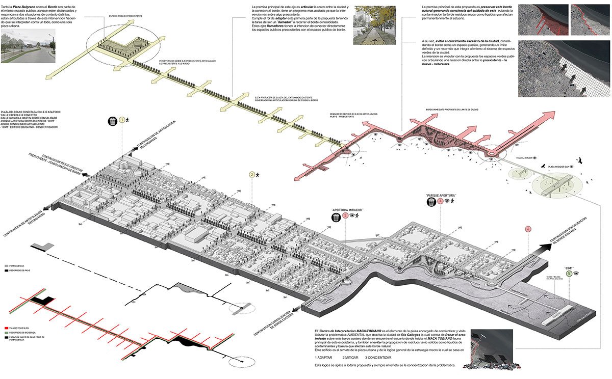 Conclusion: This project bridges urban development and environmental conservation through adaptation, mitigation, and awareness. By integrating the city with its natural surroundings, it strengthens public spaces, defines urban edges, and promotes ecological awareness, ensuring the long-term preservation of the Río Gallegos estuary.