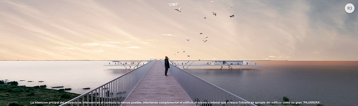 CIMT – White-Billed Macá Interpretation Centre: The Macá Tobiano Interpretation Centre was designed to address the urgent need to raise awareness and promote the conservation of the wild flora and fauna of the Río Gallegos Estuary. Situated in the city of Río Gallegos, in the province of Santa Cruz, on Argentina’s southern coast, the estuary faces significant environmental challenges due to its geopolitical and economic relevance.