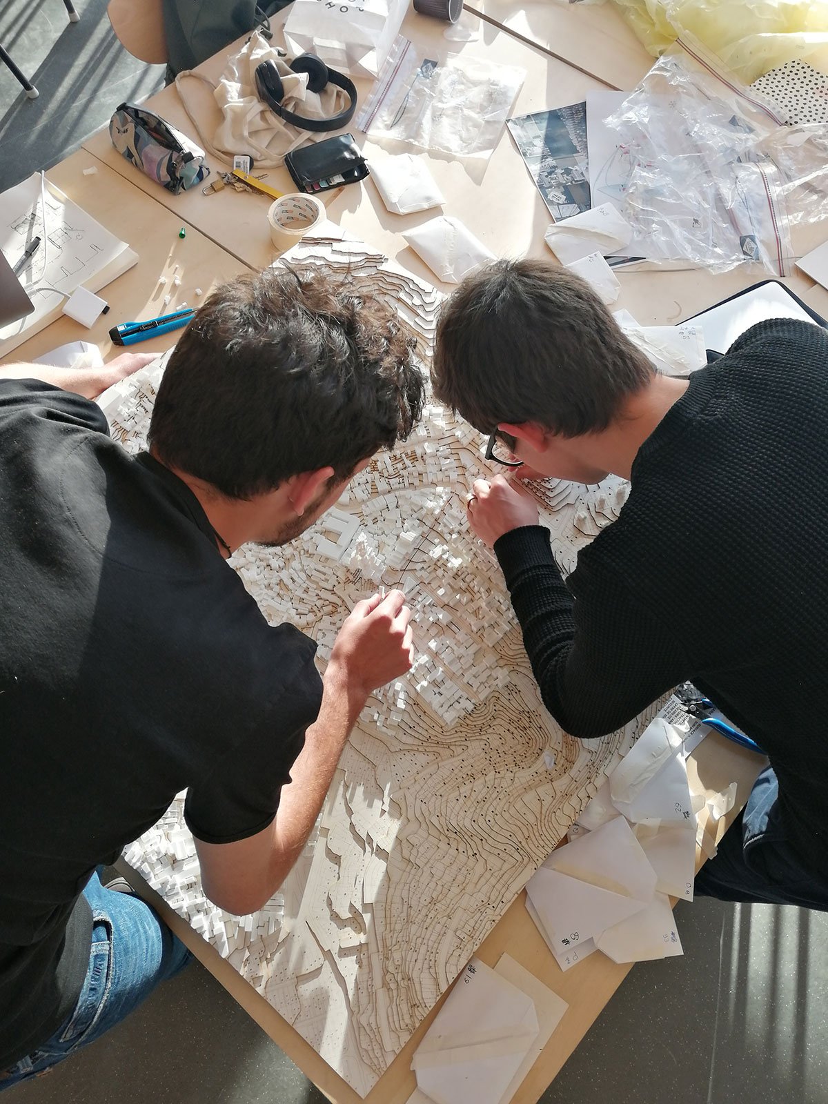 A 1:1000 scale site model with approximately 6,000 buildings was 3D printed and carved out of wood. In parallel, technical drawings were produced, and the program’s requirements were determined based on the site assessment. In the end all the material was compiled in the form of a project brief