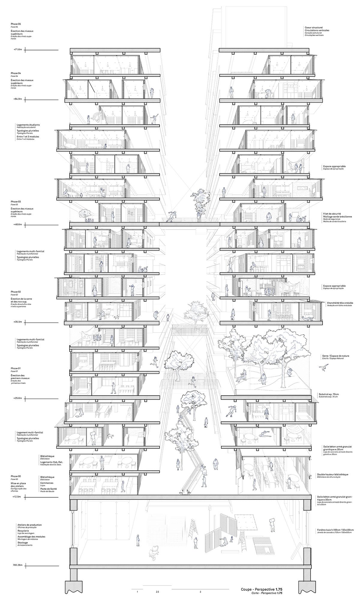 Excerpt:‘Résonnances’ is an architecture thesis by Corentin Morgan de Rivery and Clément Tardivet from ‘Ecole Nationale Supérieure d’Architecture de Lyon – ENSAL’, Université de Lyon, that explores the verticalization of dwellings, aiming to enhance living and housing scenarios in an informal settlement (slum) of Jardim Icaraí favela in the Brasilândia district of São Paulo, Brazil. The project entails putting new ideas into action, planning for urban expansion and more open spaces, rearranging existing alleyways, and constructing new road infrastructure to connect the favela to the community.