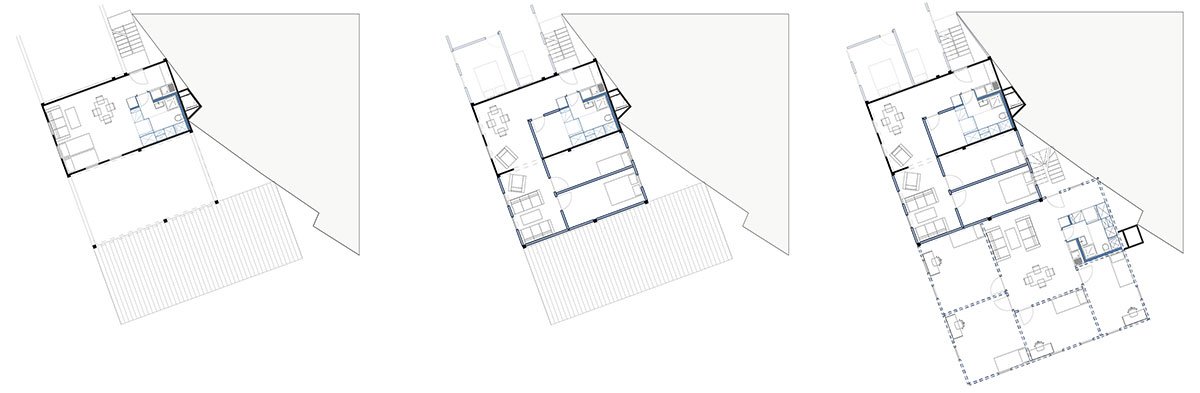 – A ‘Discreet’ horizontal project, a prototype designed for a specific alleyway but adaptable to others. In order to gradually mitigate the living standards of the favelados, architecture that is anchored in its environment is vital.