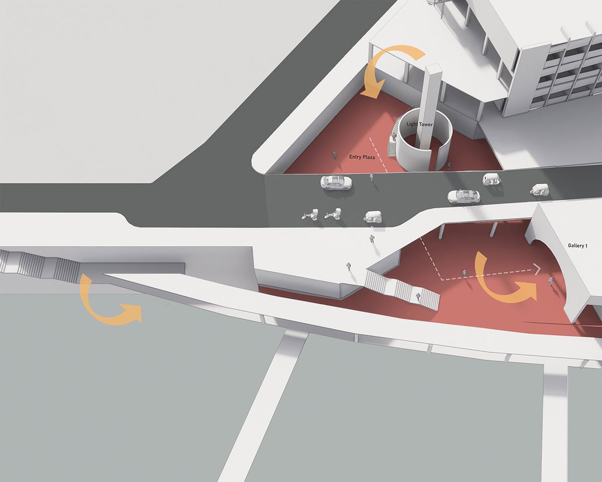 Public Plaza to Access the GalleriesZoomed In View of The Entry Plaza