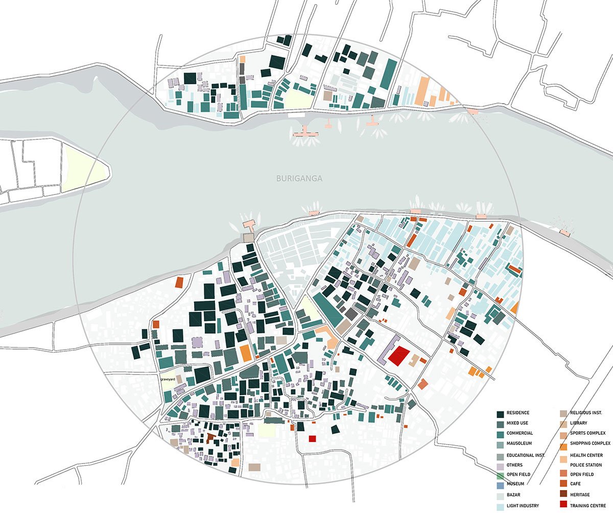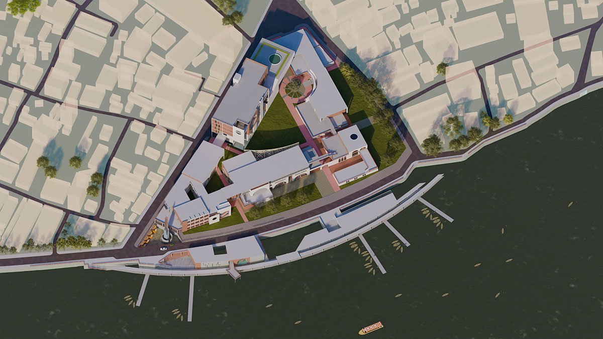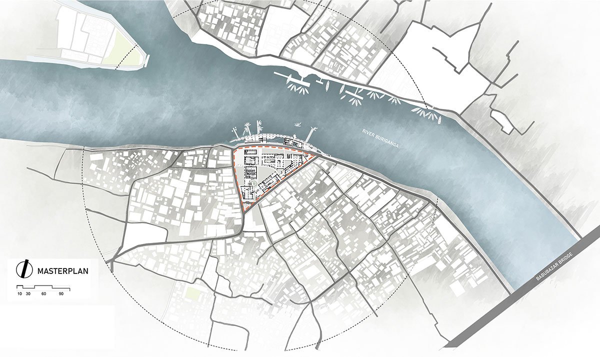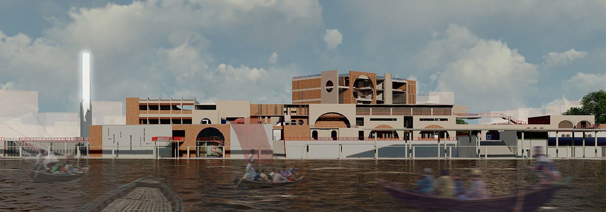 The contextual study shows that there aren’t many recreational facilities nearby, and there aren’t any libraries or cafeterias to enjoy the Buriganga River’s scenic beauty. Additionally, there are a great deal of “Ghaat” (boat terminals), which are crucial for loading and unloading cargo, scattered and haphazardly placed on the Buriganga river bank. A bonded framework, including an experiential pathway, is required for the project so that all the functions can coexist under one roof.