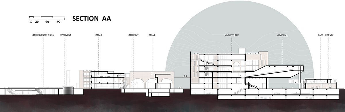 To ensure that no single attribute overrides another, the aim of this project was to tie the massacre event to the already-existing function. The baseline of the design approach is followed by the New Contextualism which helped define the project in two ways: large-scale factors in an urban setting and the relationships between various functions.