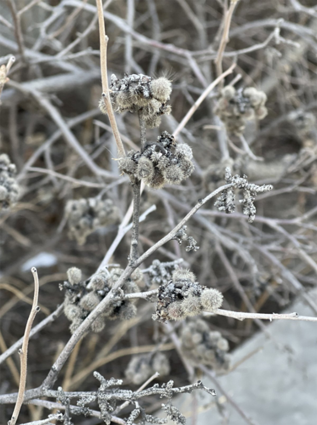 Plant Life On Site Observed #3 — Dense, Dry Shrubury | Materials On Site Observed, Plaster And Steel Gates/Fences.