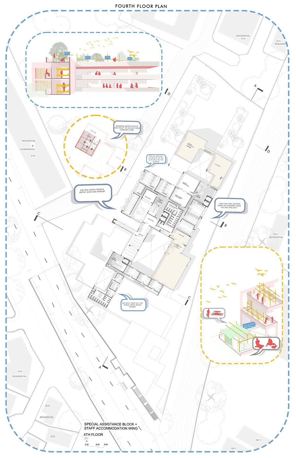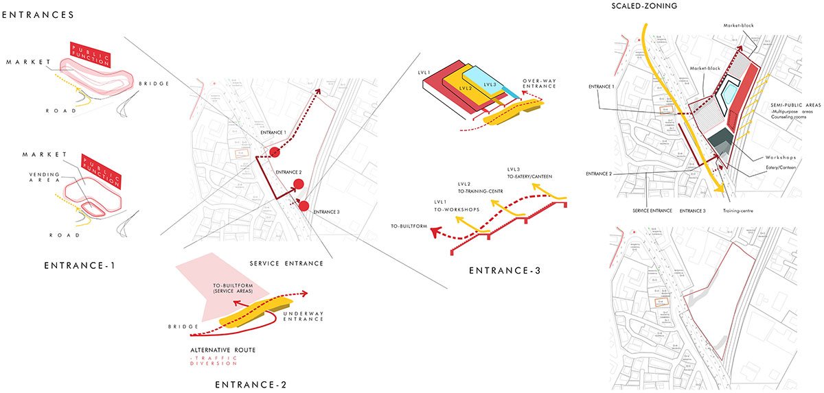 During the planning stage, the government can further shortlist sites with specific features like those mentioned above to ensure the creation of productive spaces for incoming individuals. Therefore, within the city, users are trained and made self-sustainable through their course of stay in the shelter. They contribute to the city by offering recreational services, subsidized markets, worker communities and many more.