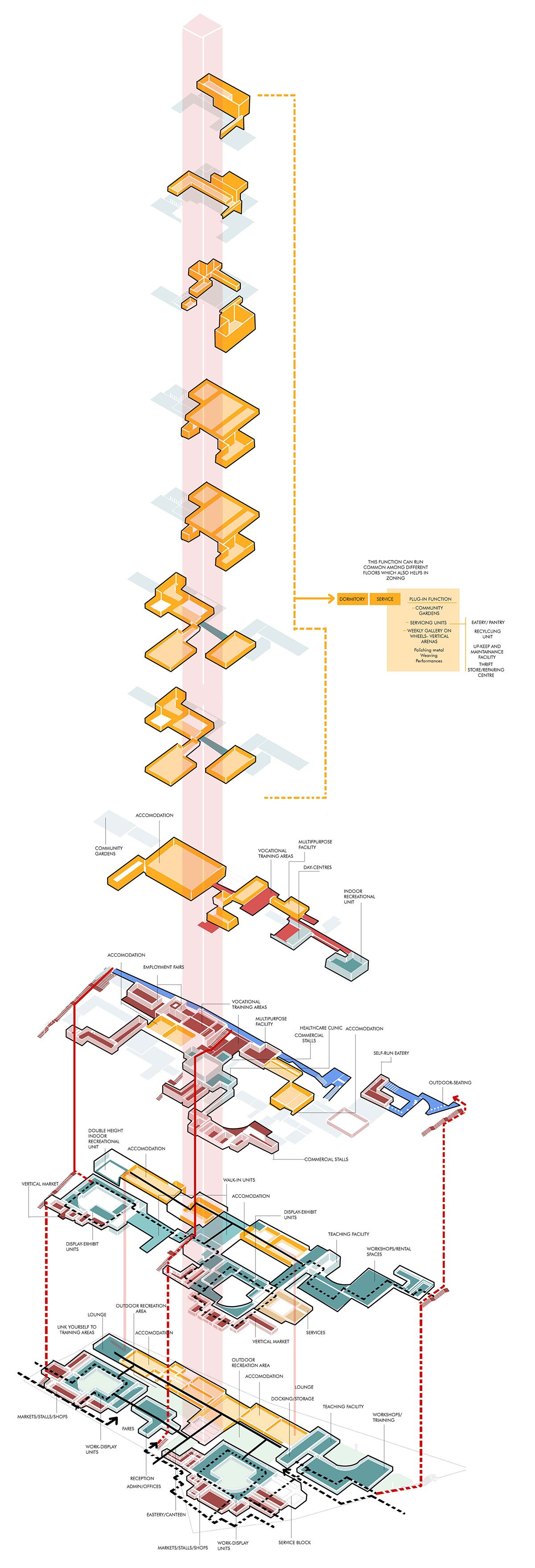 Conclusion: The project challenges stereotypical notions about the hybridity and duality of shelters and explores an architectural solution that proposes a housing programme that integrates the social and commercial infrastructures of the city.