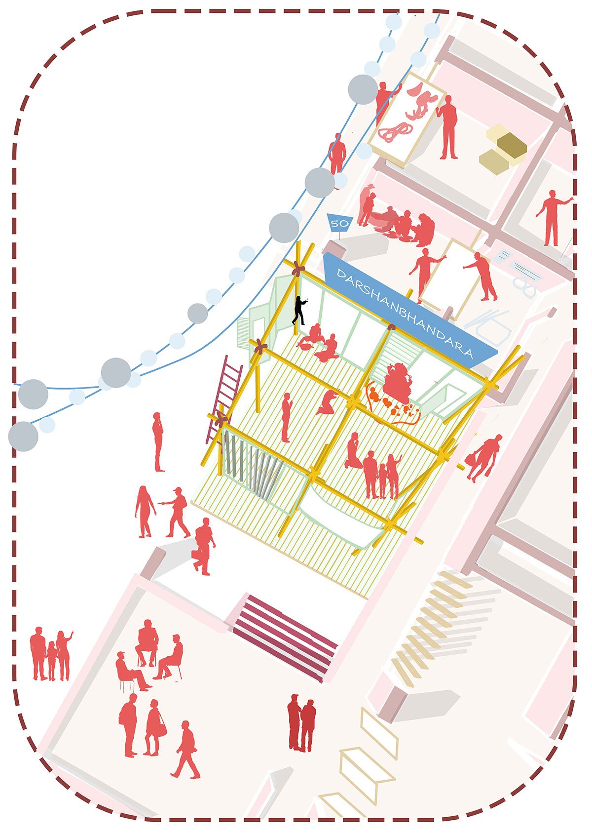 The Program Intent: The initiative seeks to challenge conventional stereotypes while providing shelter for marginalised communities. With a focus on the nomadic community, the shelter offers essential amenities and services to all low-income groups. In addition to providing areas for people to sell goods commercially, it also supports a strong infrastructure that enables locals to produce, learn, and sell.