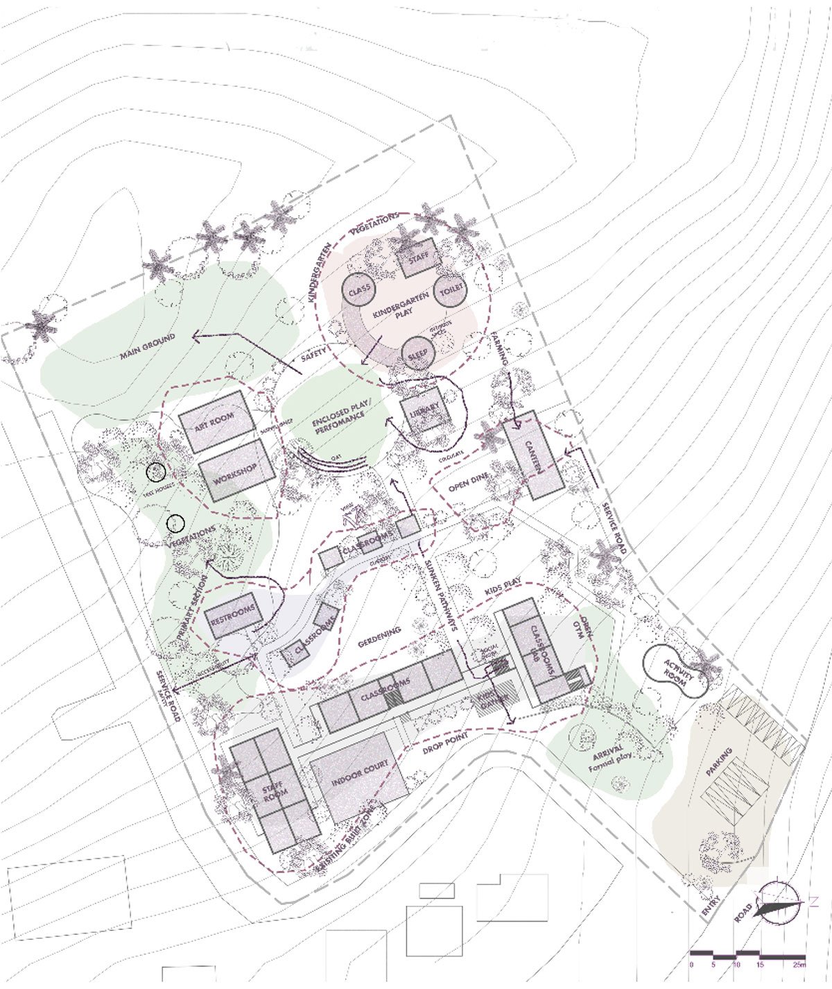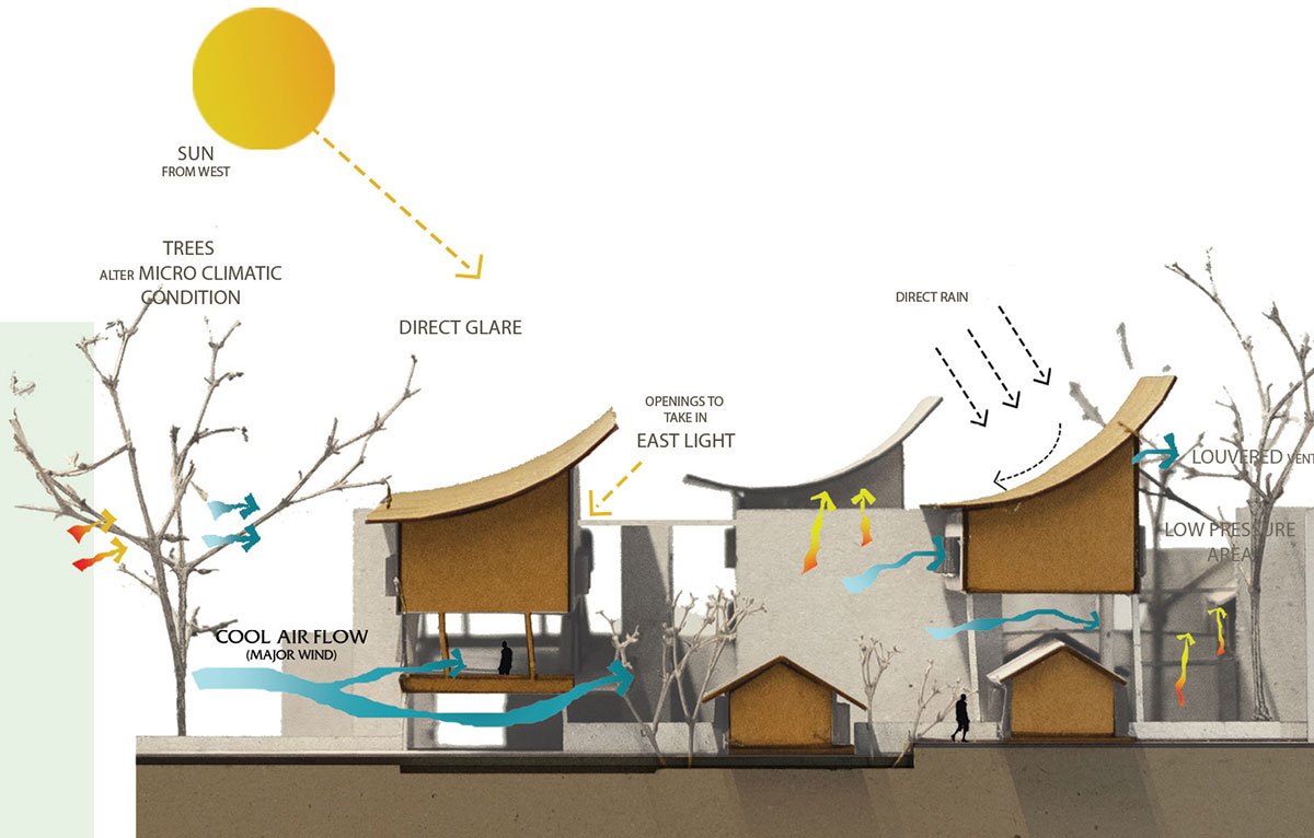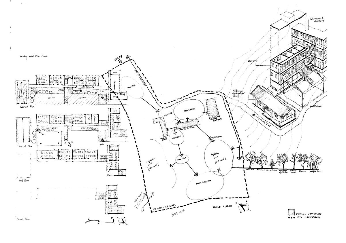 Site Study and Spatial Planning: A thorough site study is conducted to assess factors like accessibility, available resources, and potential spatial usage by students. This information informs the placement and arrangement of built masses, open spaces, and circulation paths.